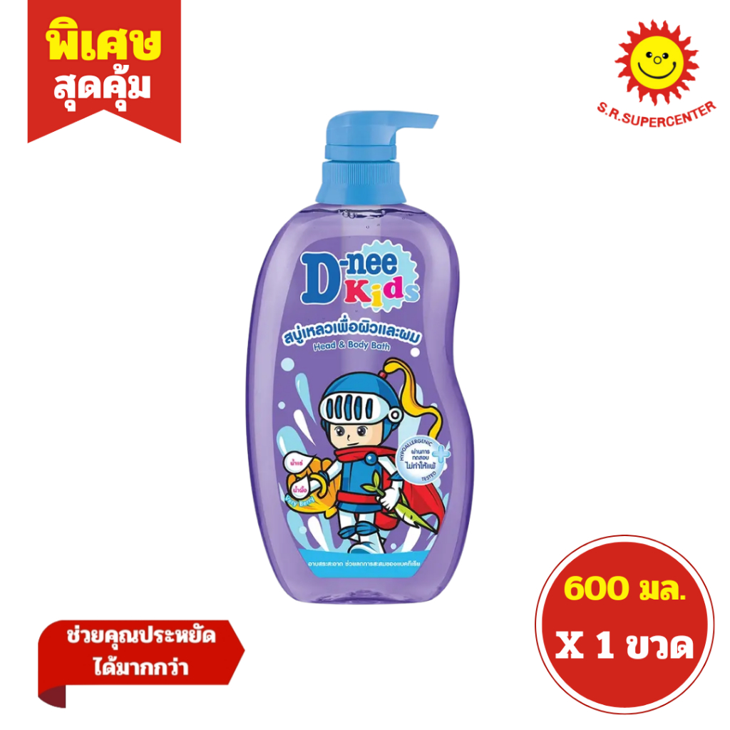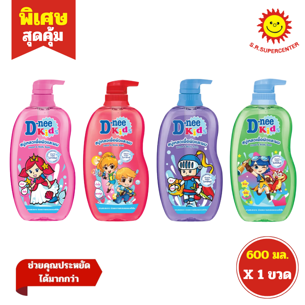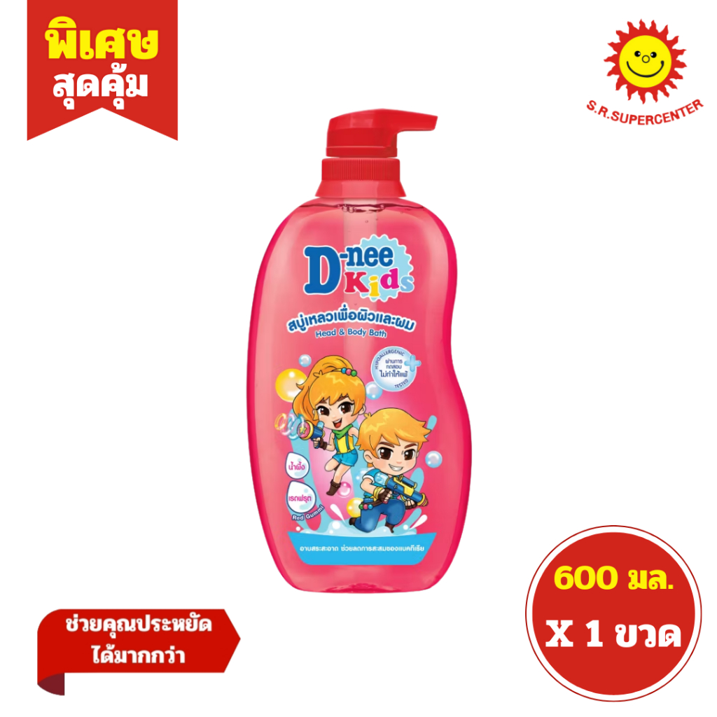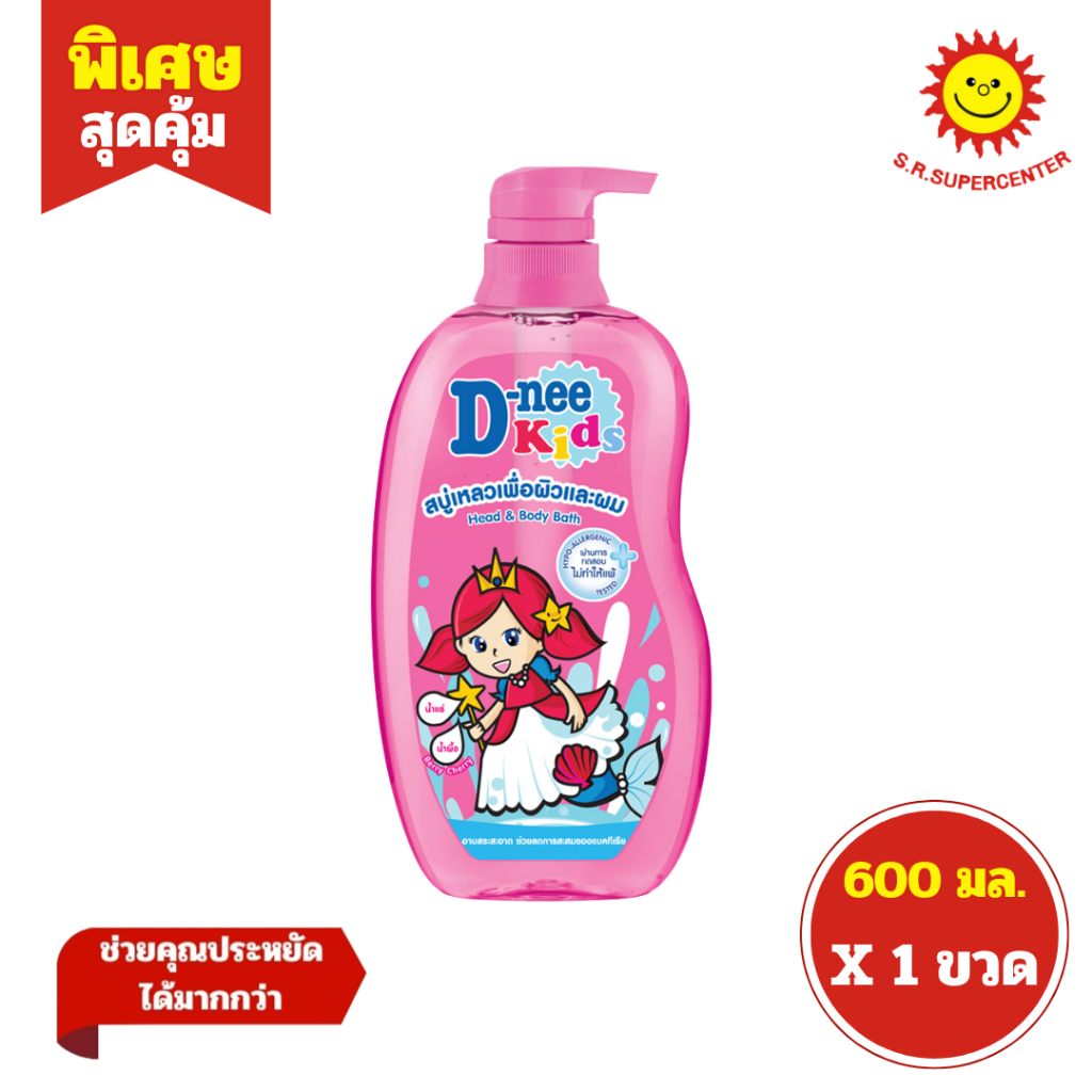 [ 1ขวด ] D-nee Kids ดีนี่ คิดส์ สบู่เหลวเพื่อผิวและผม แบบหัวปั๊ม ขนาด 600 มล. (1ขวด) คละสูตร