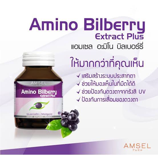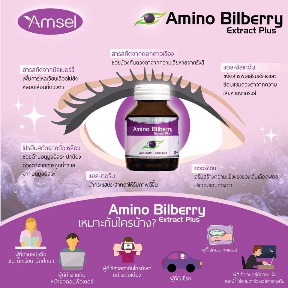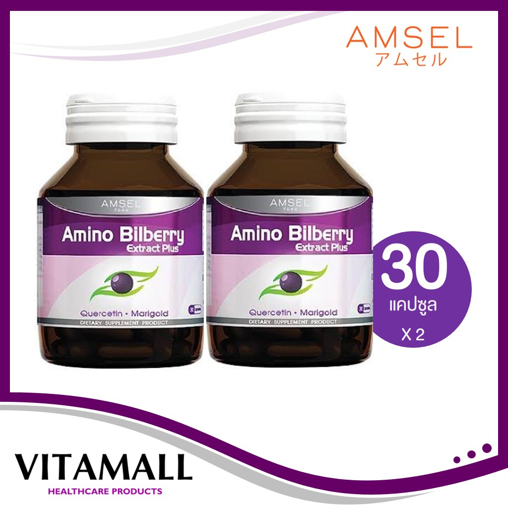 Amsel Amino Bilberry แอมเซล อะมิโน บิลเบอร์รี่ อาหารเสริมบำรุงดวงตา [2 ขวด]