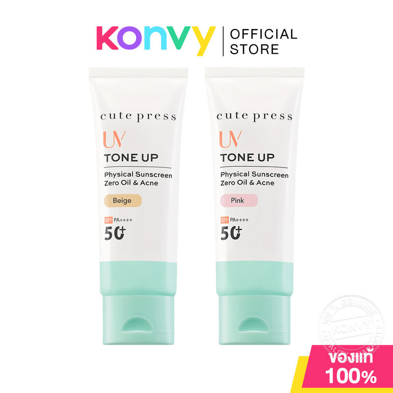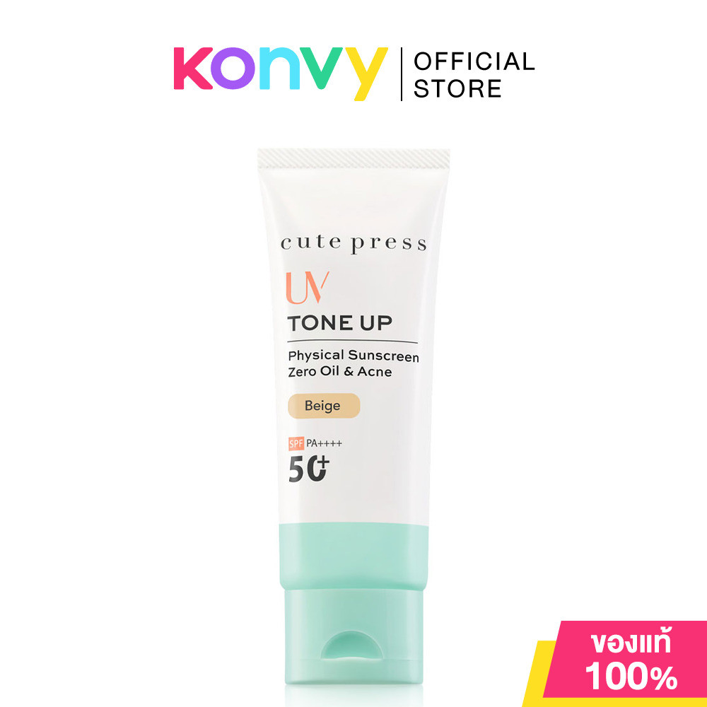 Cute Press Tone Up Zero Oil & Acne Physical Sunscreen SPF50+ PA++++ 30ml คิวท์เพรส กันแดดโทนอัพ สูตรฟิสิคอล