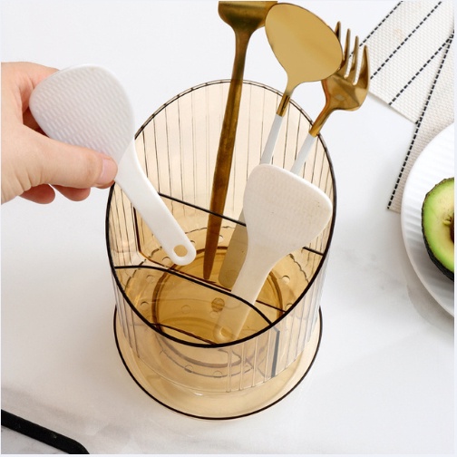 anastasia_66.shop กล่องใส่ตะเกียบและช้อน แบบใส มีช่องระบายน้ำ แบบแขวนติดผนังสำหรับใช้ในห้องครัว
