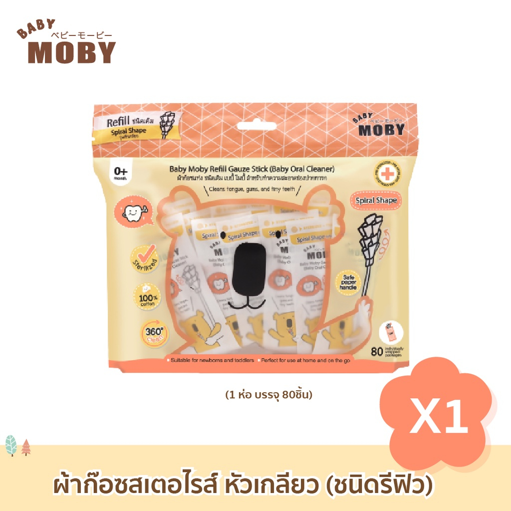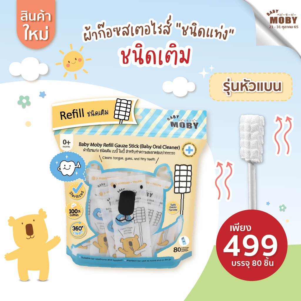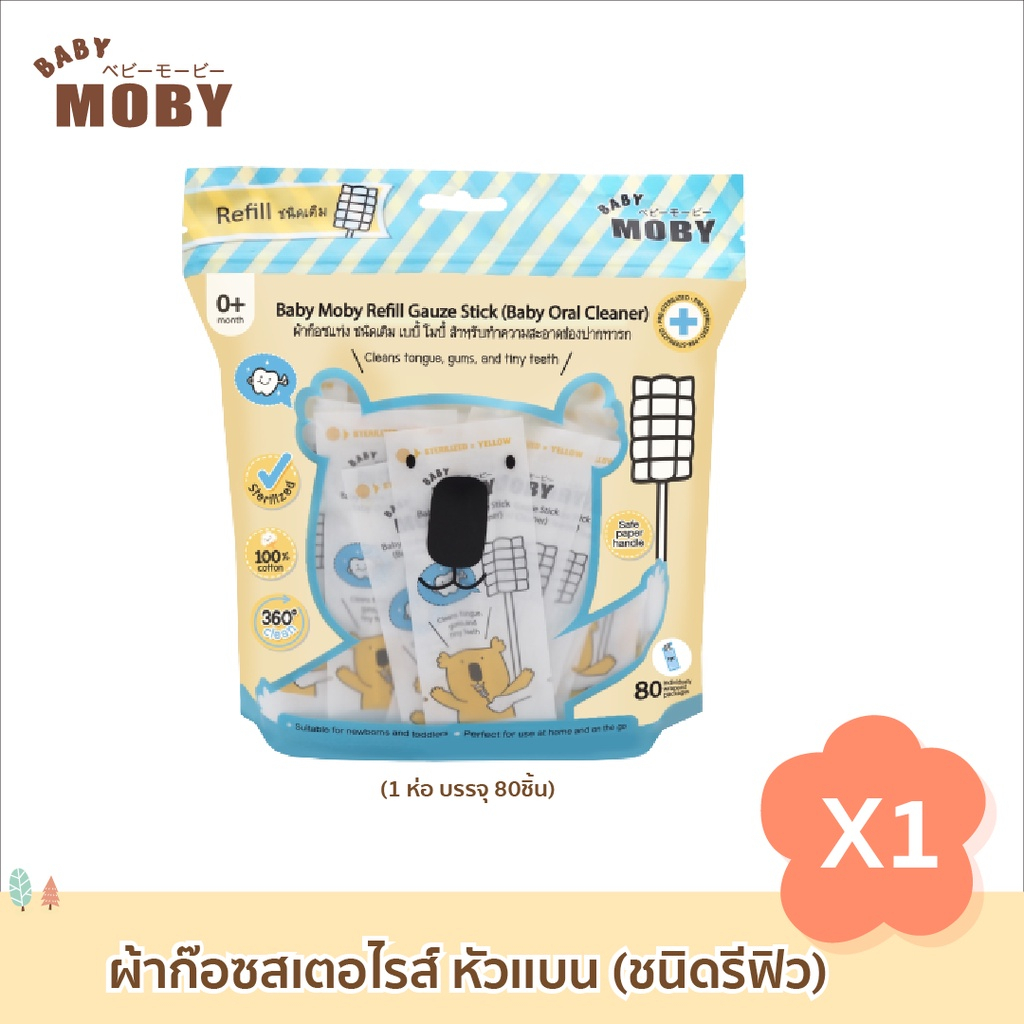 Baby Moby ผ้าก๊อซสเตอไรด์ แบบแท่ง สำหรับเด็ก ทำความสะอาดช่องปาก เช็ดฟัน ลิ้น เหงือก กระพุ้งแก้ม (32 แท่ง / 1กระปุก)