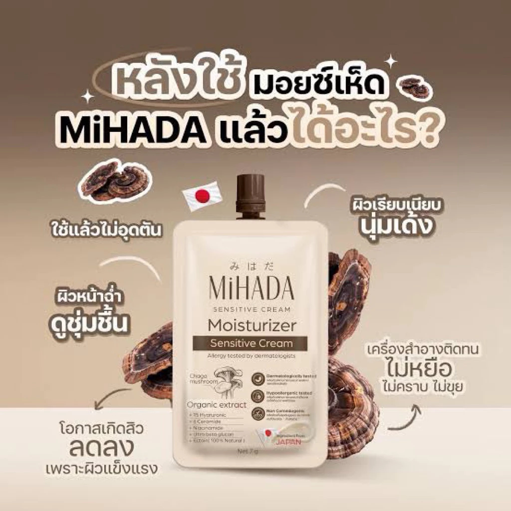 (ซอง) MiHADA Moisturizer Sensitive Cream มิฮาดะ มอยเจอร์ไรเซอร์ เซนซิทีฟ ครีม (มอยซ์เห็ด) 7 กรัม