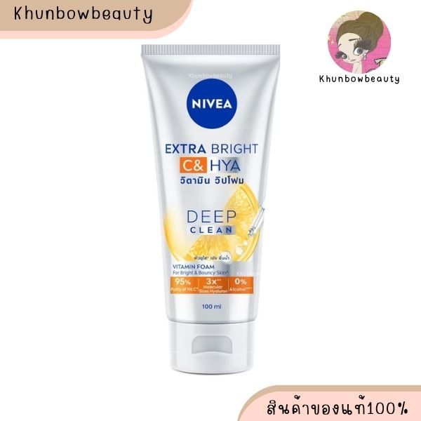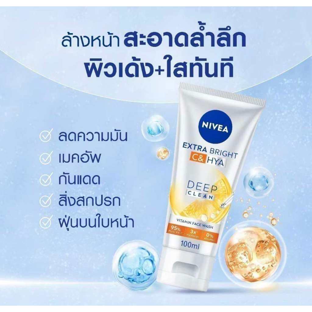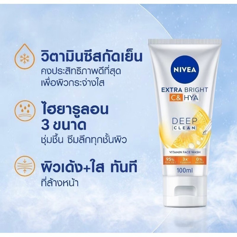 นีเวีย เอ็กตร้า ไบร์ท ซี แอนด์ ไฮยา วิตามิน วิปโฟม ดีฟ คลีน โฟมล้างหน้า 100มล. NIVEA Extra Bright C&HYA Deep Clean