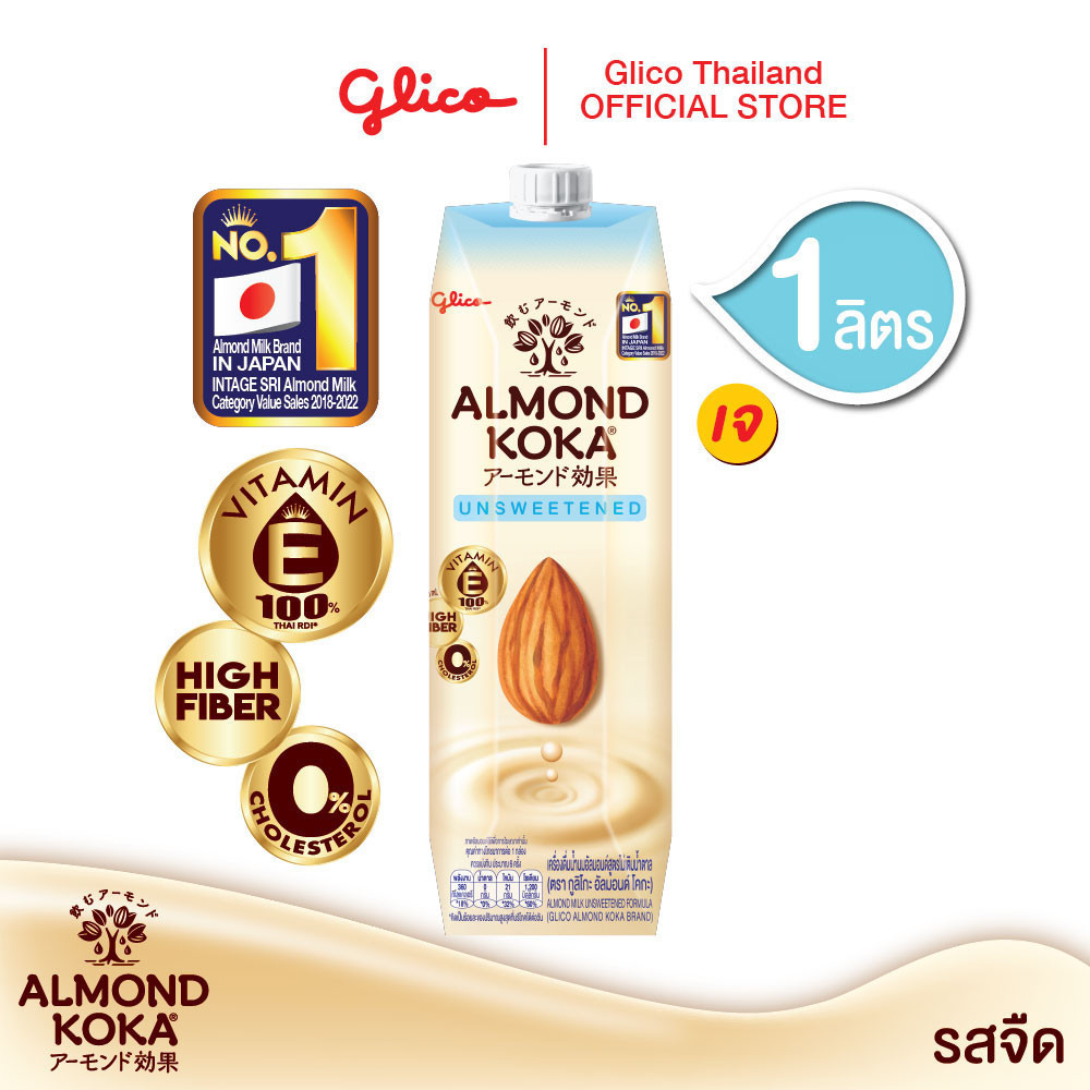 Glico Almond Koka กูลิโกะ นมอัลมอนด์ โคกะ 1 ลิตร ใยอาหารสูง มังสวิรัติ สำหรับคนรักสุขภาพ ฮาลาล