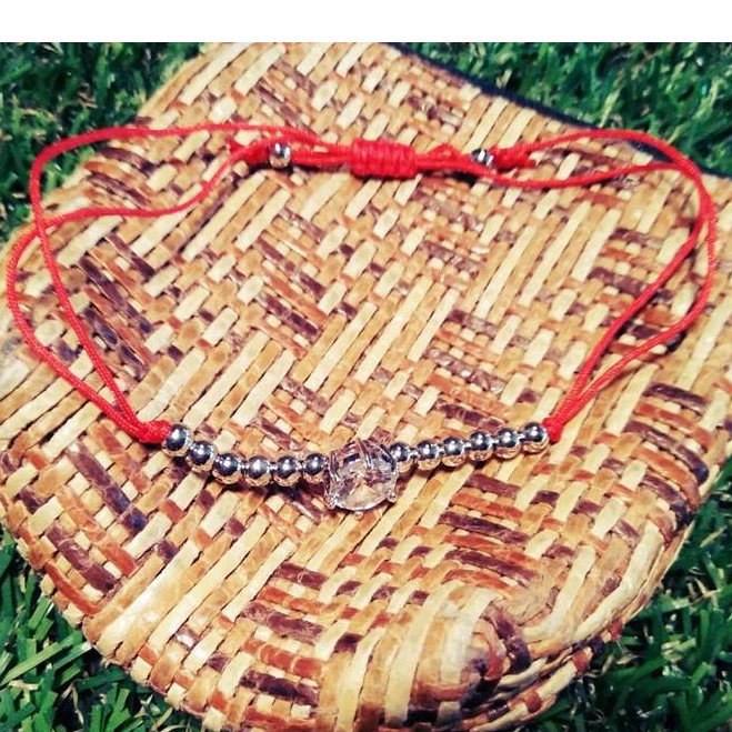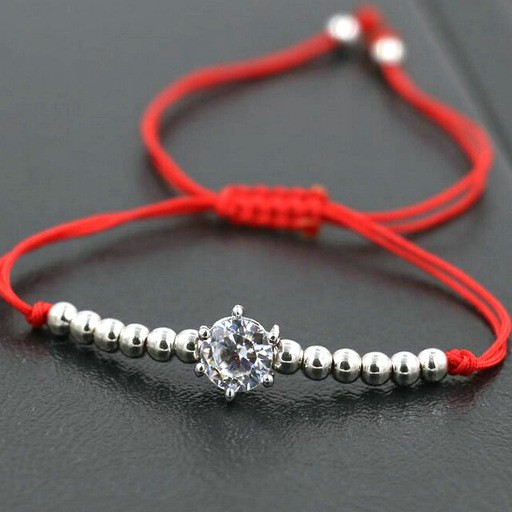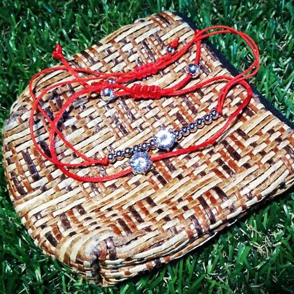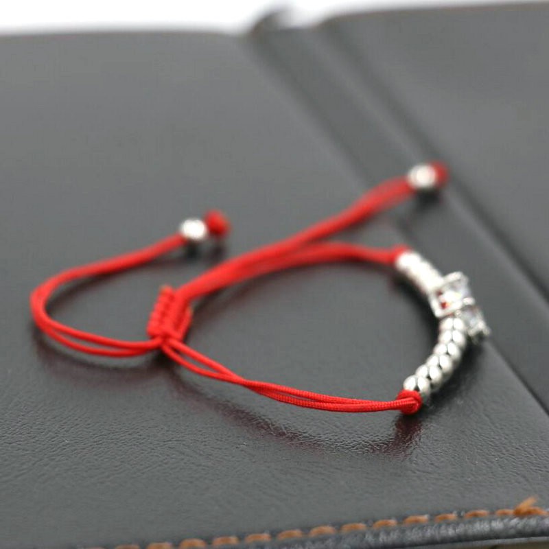 โชคดีคูณ2 ในชุดแบบพิเศษ เชือกแดง2เส้นคู่ กับCZน้ำงามขนาด4มม.