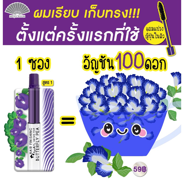 เซรั่มอัญชัน เก็บไรผม จัดทรงผม ตกแต่งไรผม อยู่ทรง Meiji Butterfly Pea Hair Serum