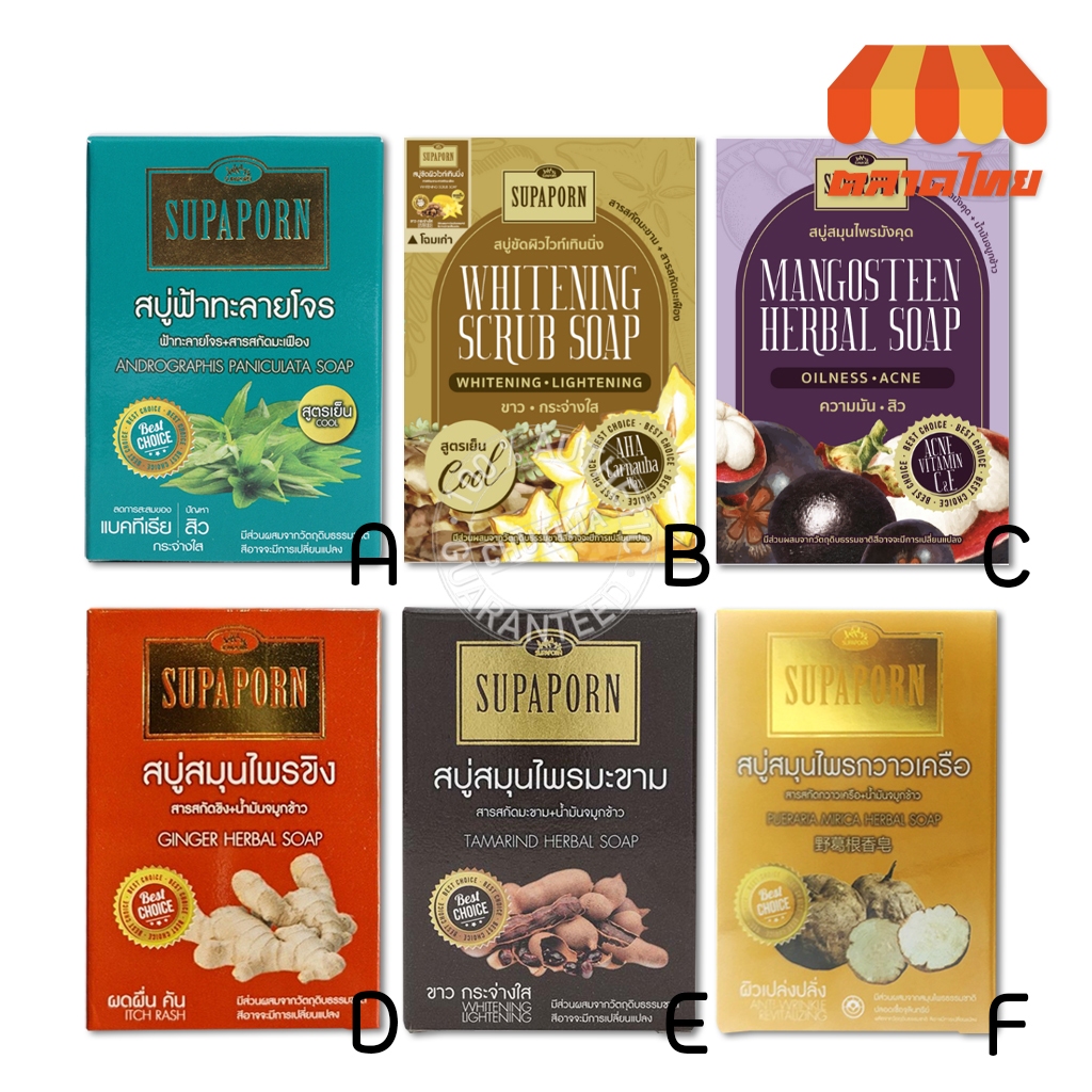 SUPAPORN สุภาภรณ์ สบู่สิวแผ่นหลัง/ไวท์เทนนิ่ง/มังคุด/ขิง/มะขาม/กวาวเครือ 100 กรัม