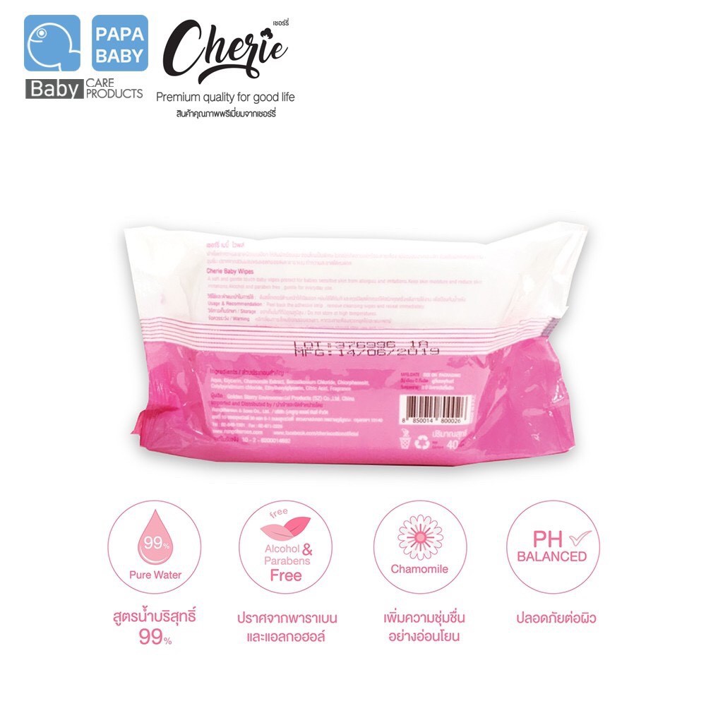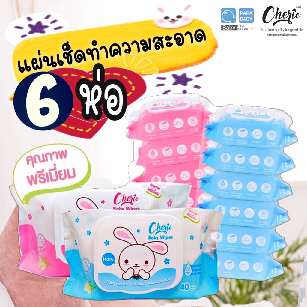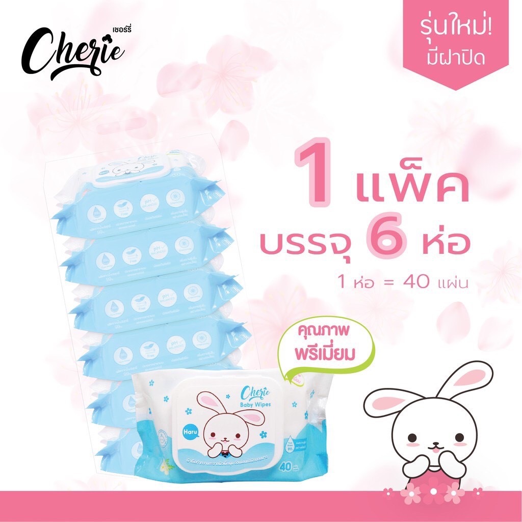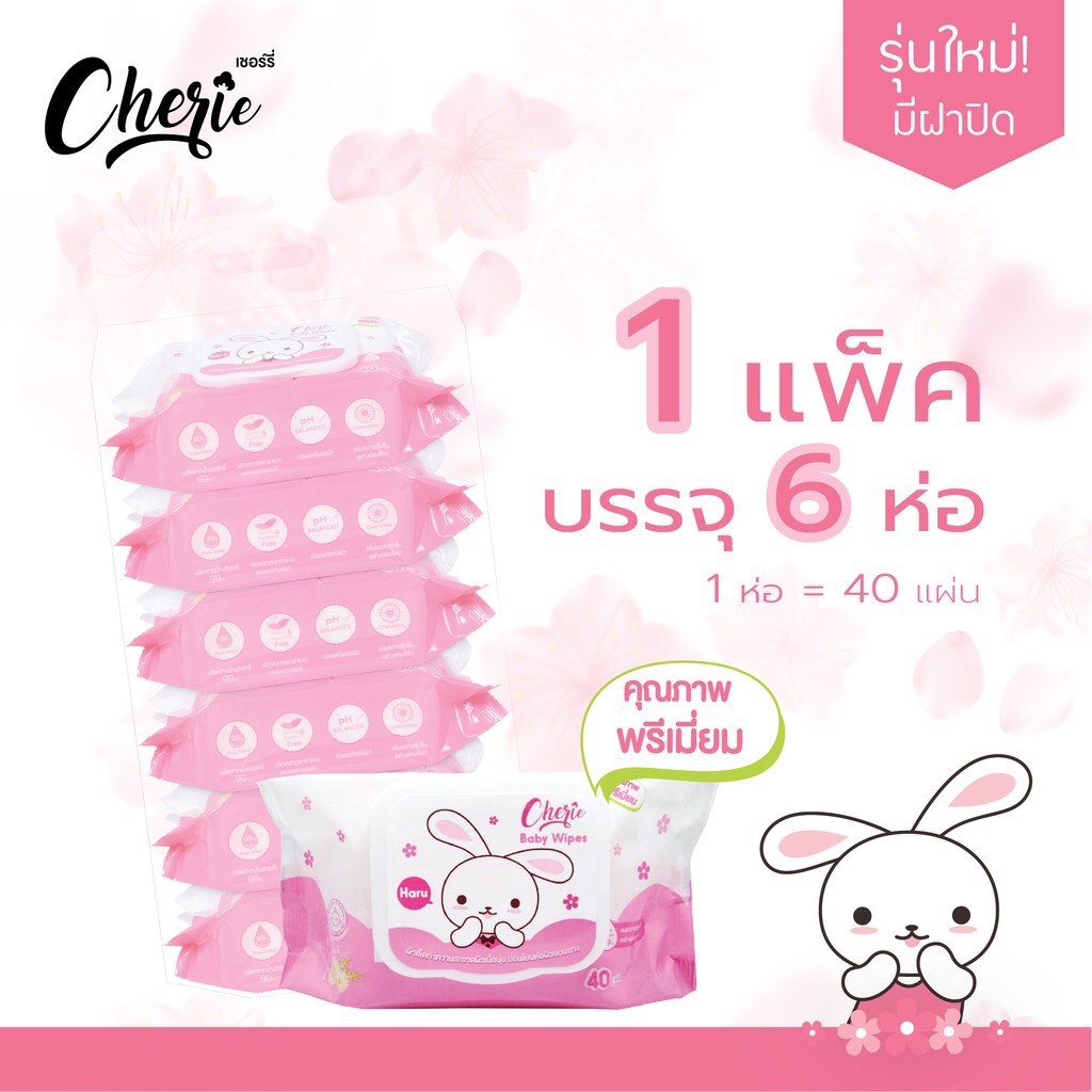 NS (ขายยกแพค 6 ห่อ) กระดาษทิชชู่เปียกเชอร์รี่ Cherie Baby Wipes (6 ห่อ)