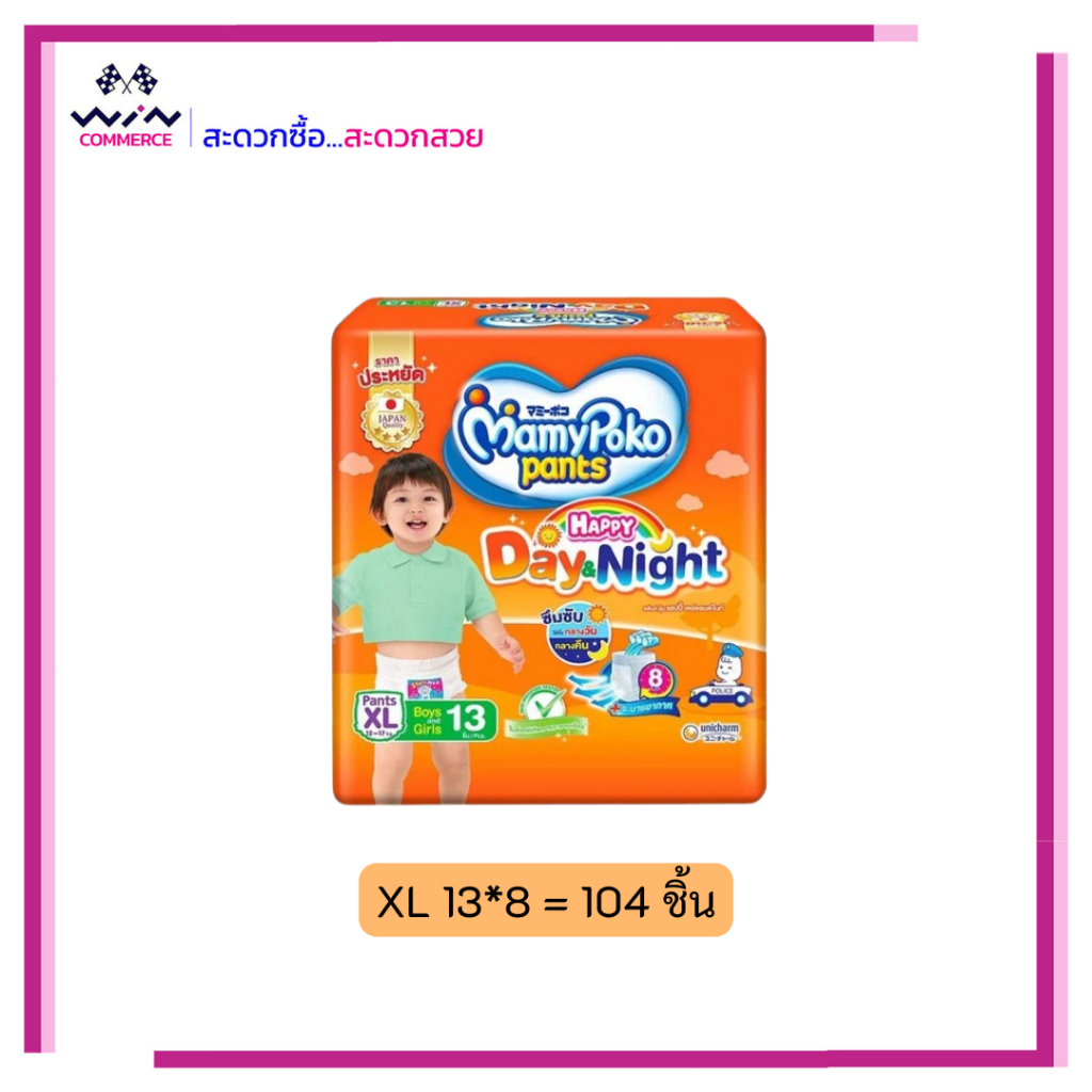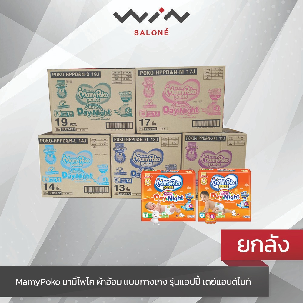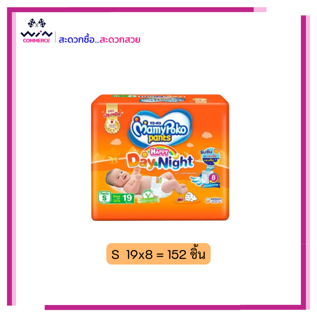 ยกลัง MamyPoko มามี่โพโค ยกลัง ผ้าอ้อมแบบกางเกง ผ้าอ้อมเด็ก มามี่สีส้ม เดย์ไนท์ ครบไซส์ S- XXL
