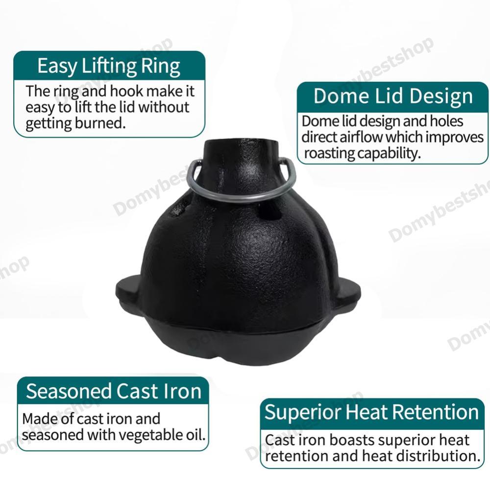 COD เครื่องคั่วควันเหล็กหล่อพร้อมฝาปิดเครื่องคั่วกระเทียมปรุงรสล่วงหน้าทนความร้อนเหล็กหล่อหม้อเตาอบดัตช์สําหรับย่างบาร์บีคิวกลางแจ้ง
