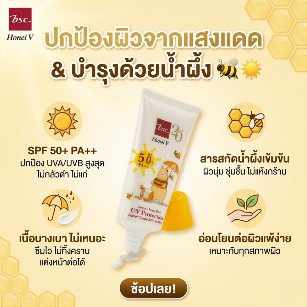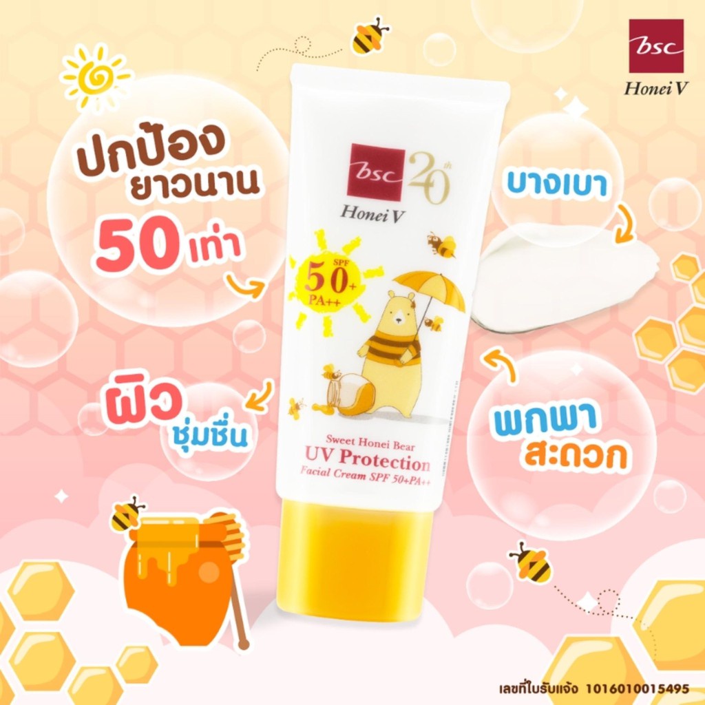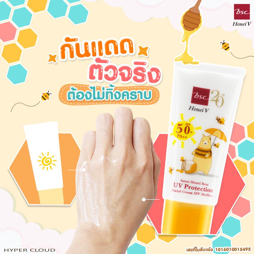 [CLEARANCE] HONEI V BSC ครีมกันแดด SWEET HONEI BEAR UV PROTECTION SPF50+ PA++ 30g. บางเบา ซึมไว ปกป้องผิว