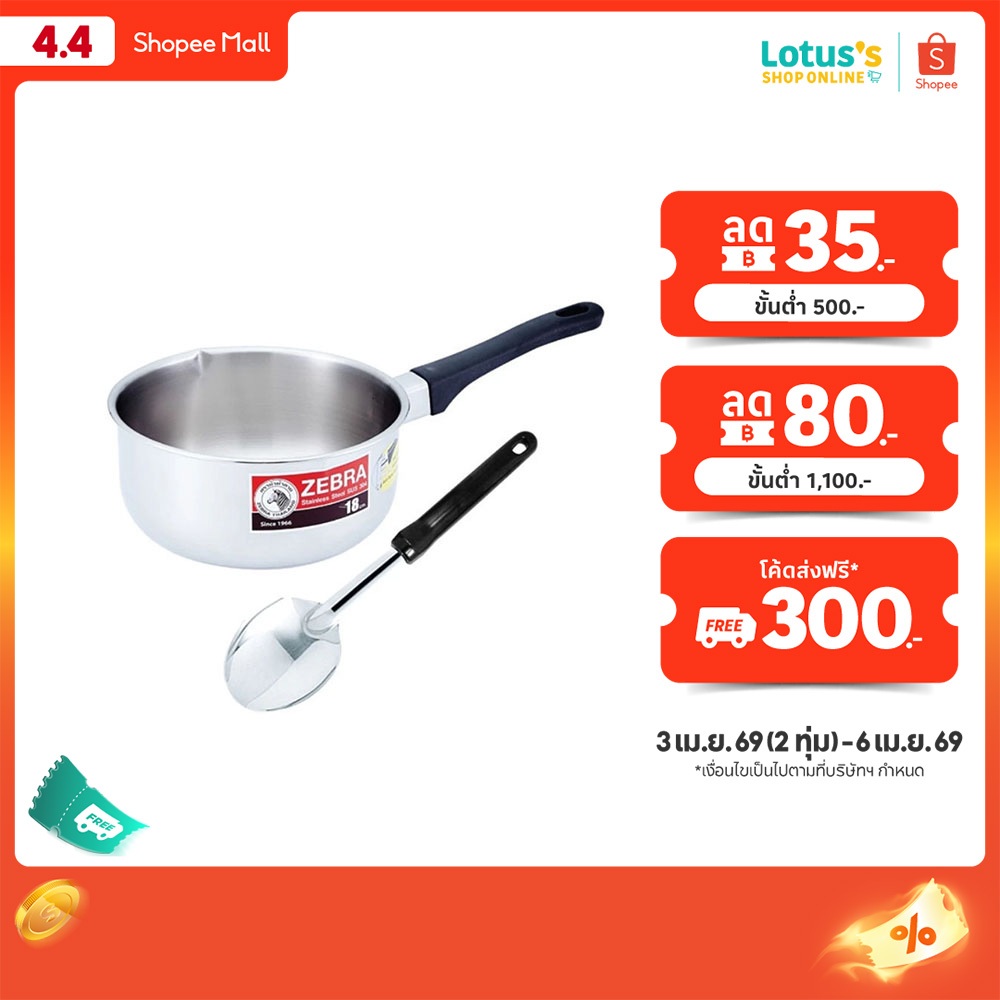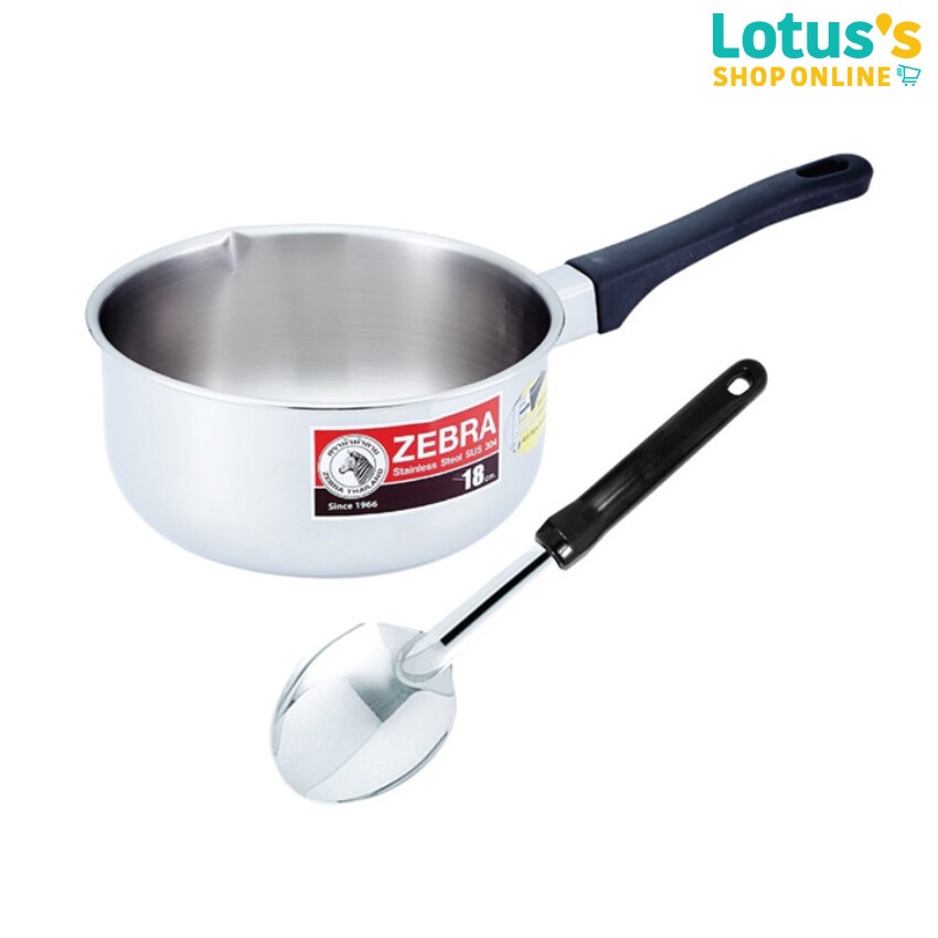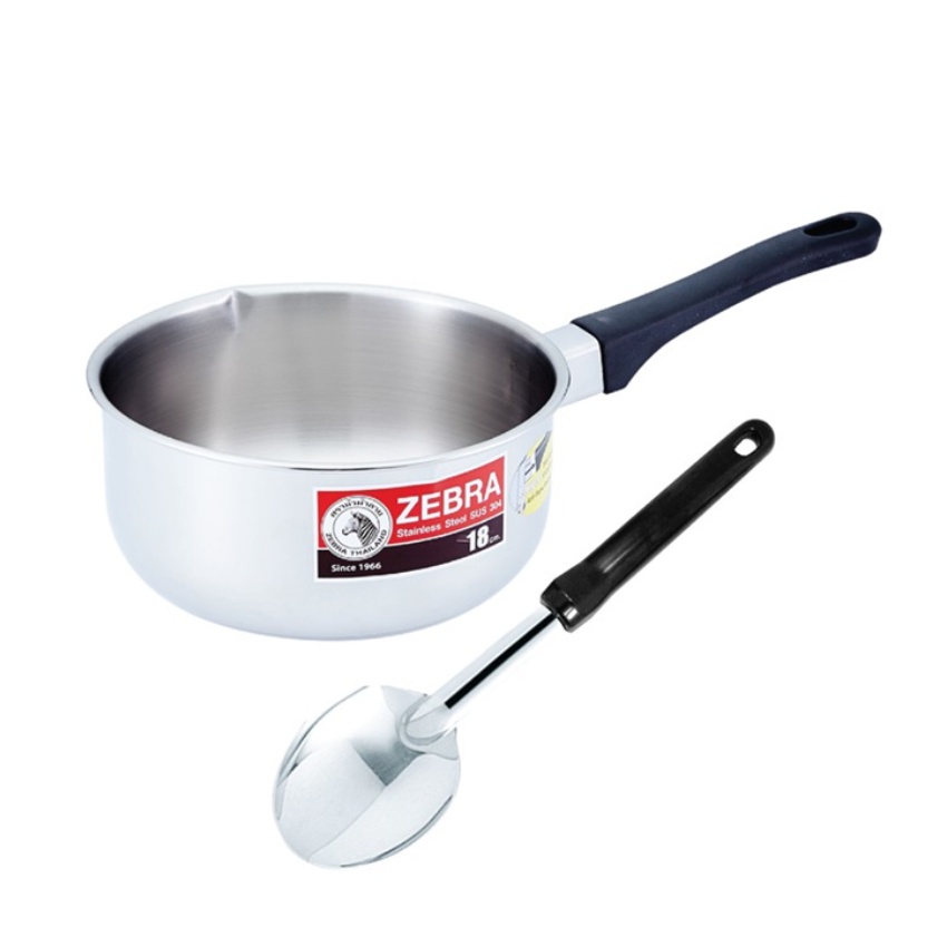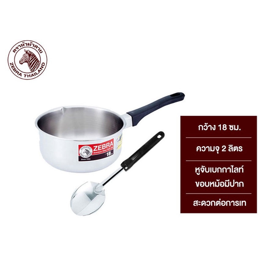 [หม้อด้ามแถมทัพพี] ซีบรา ตราหัวม้าลาย หม้อด้ามญี่ปุ่น ขนาด 18ซม + ทัพพีเล็ก FOCUS ZEBRA, ZEBRA BRAND, JAPANESE POT