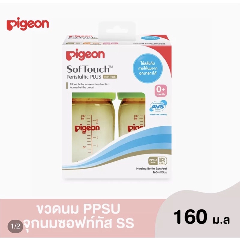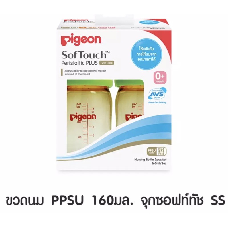 PIGEON พีเจ้น ขวดนม คอกว้าง สีชา ขนาด5 ออน+ จุกเสมือนนมมารดาไซส์ SS แพ็ค 2 ขวด