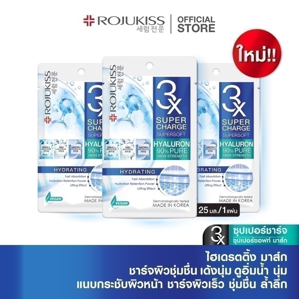 โรจูคิส ซุปเปอร์ชาร์จ ซุปเปอร์ซอฟท์ ไฮเดรตติ้ง มาส์ก 25 มล. ROJUKISS SUPERCHARGE SUPERSOFT HYDRATING MASK 25 ml x3