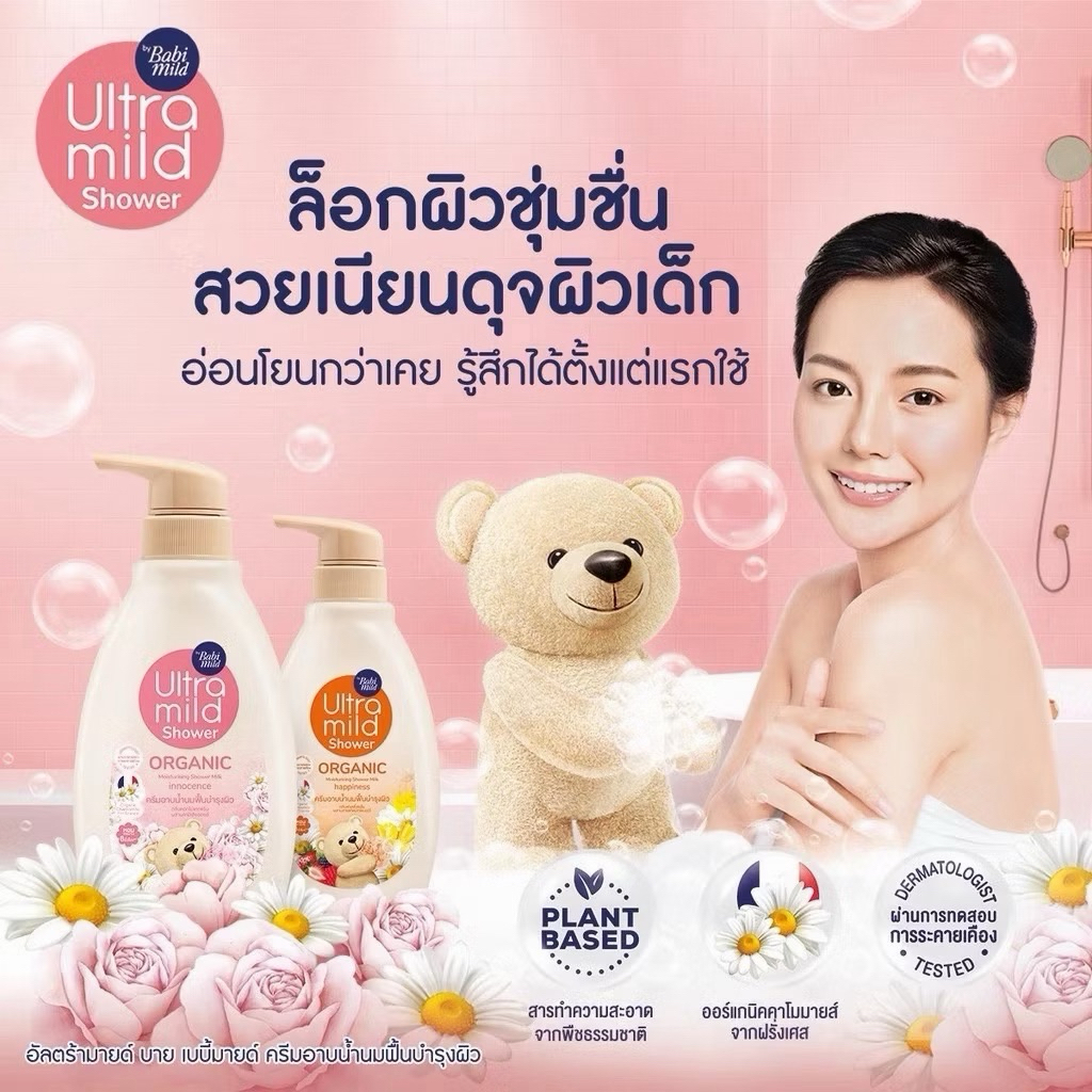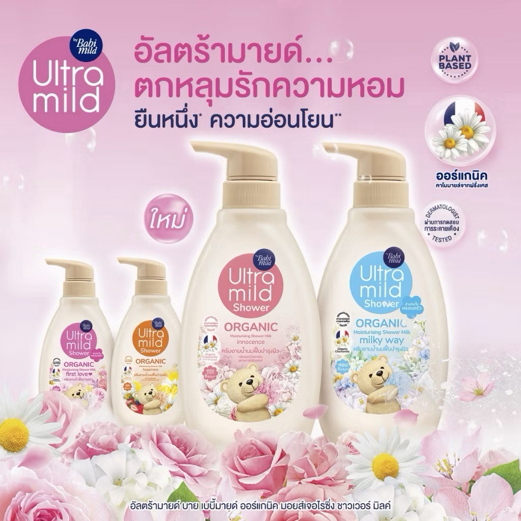 เบบี้มายด์ ครีมอาบน้ำ เนื้อน้ำนม สูตรอ่อนโยน 380ml Babi Mild Ultra Mild Organic Shower Milk