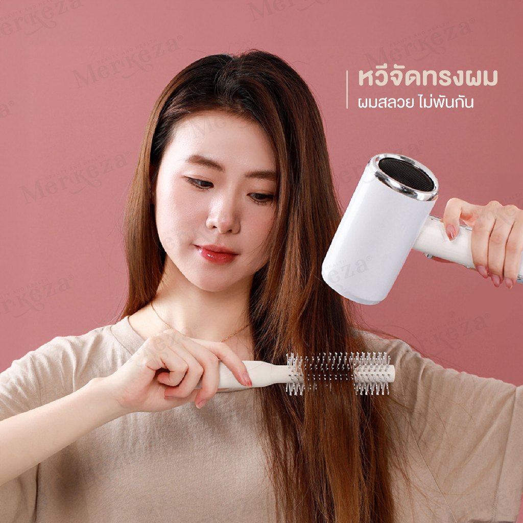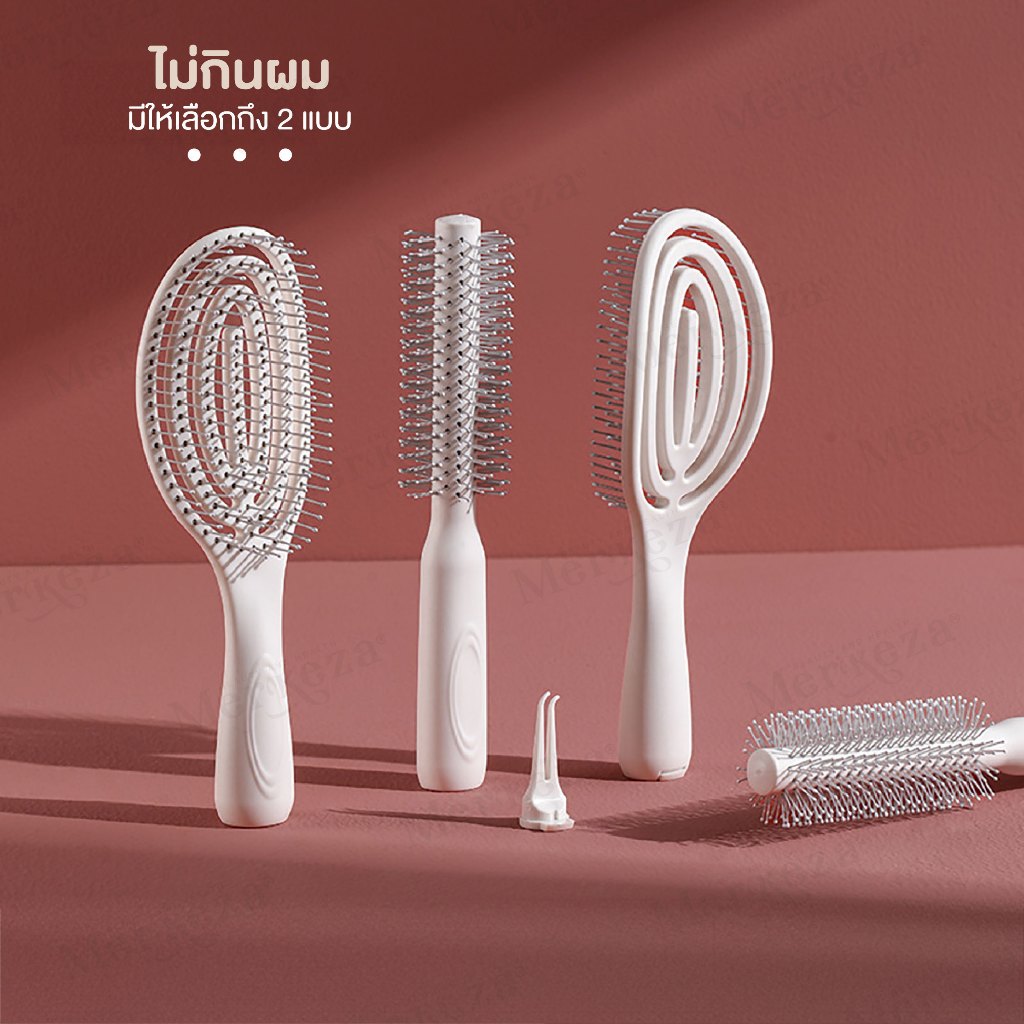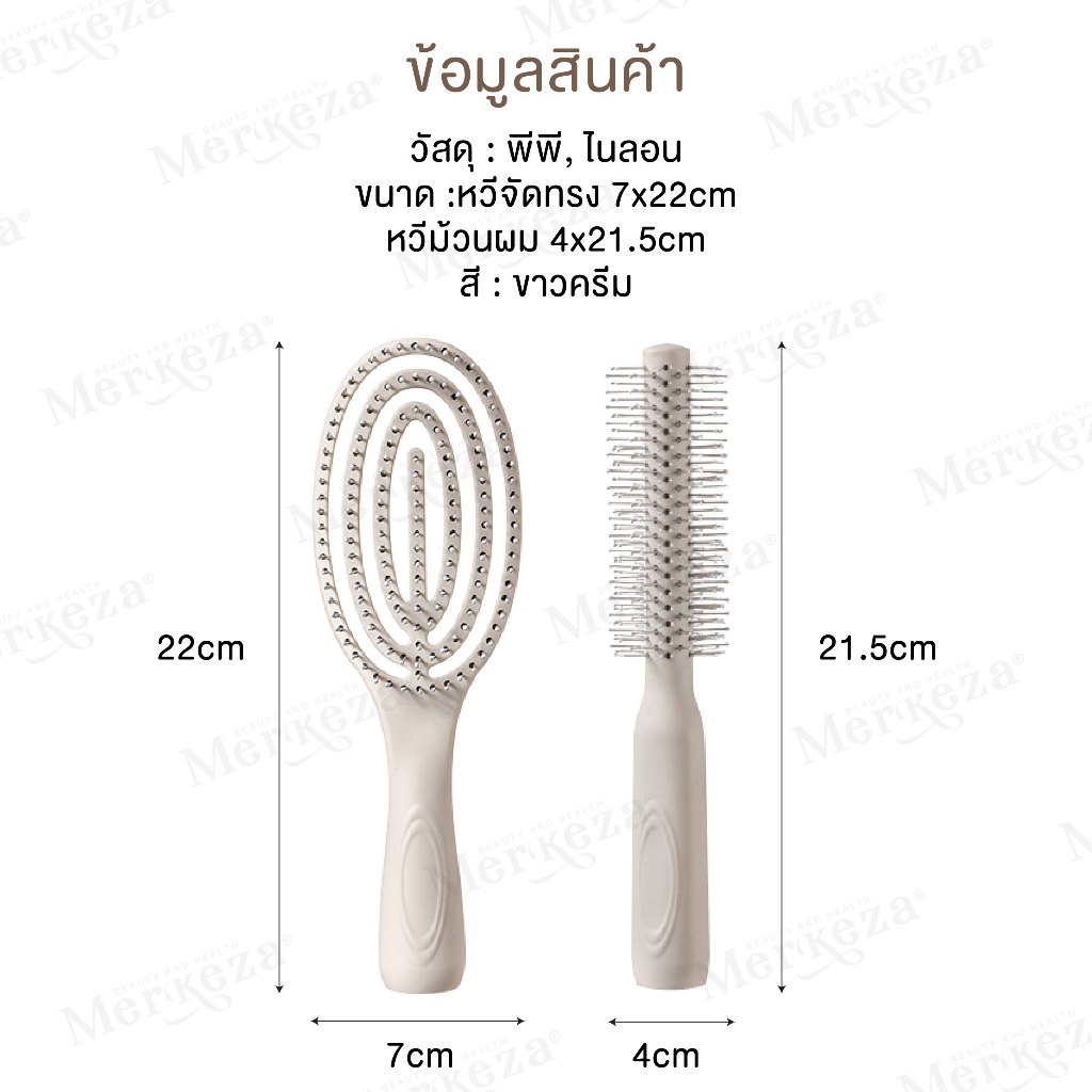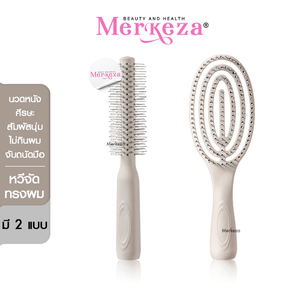 Merkeza Comb style hair หวี จัดทรงผม สีขาว ม้วน ไดร์ จัดแต่งทรง ทำลอน ไดร์ ผมพันกัน หวีกลม แปรง นวดศรีษะ