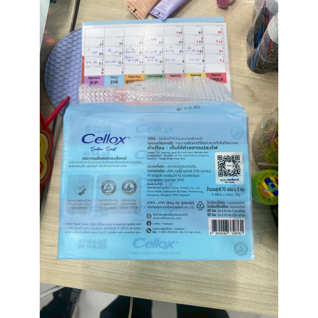 [ 1 แพ็ค ] Cellox เซลล็อกซ์ กระดาษเช็ดหน้า 3 ชั้น ซาติน ซอฟท์แพค 70 แผ่น (4+1)หน้าหมีขาว