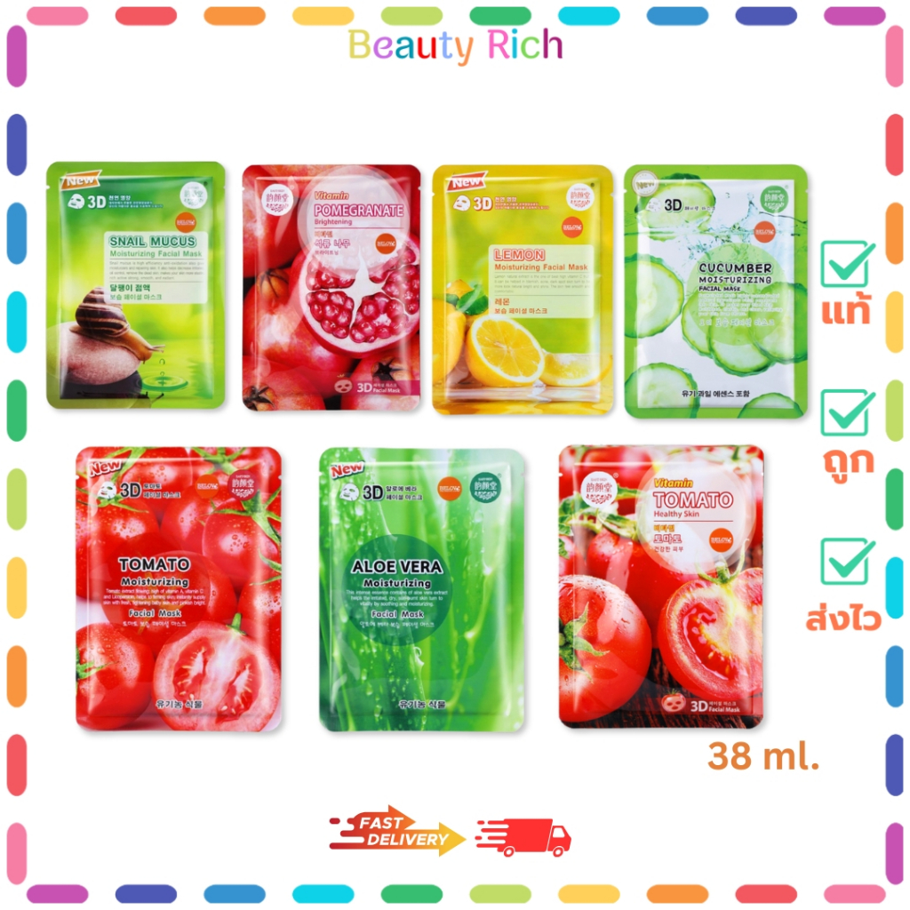 (1 ซอง) East-Skin Mask แผ่นมาส์คหน้าดับเบิ้ล 3D มีให้เลือก 7 สูตร (ปริมาณ 38 ml.)
