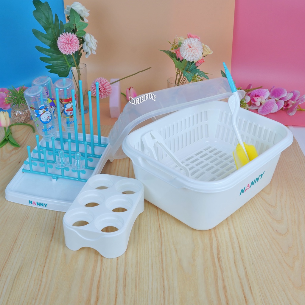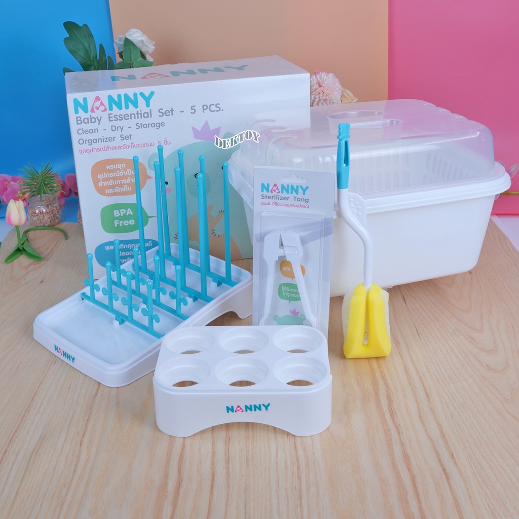 Nanny ชุดเซ็ตกล่องพร้อมอุปกรณ์สำหรับล้างและจัดเก็บขวดนม จำนวน 5 ชิ้น