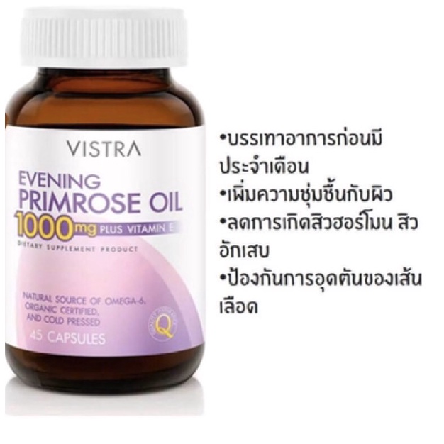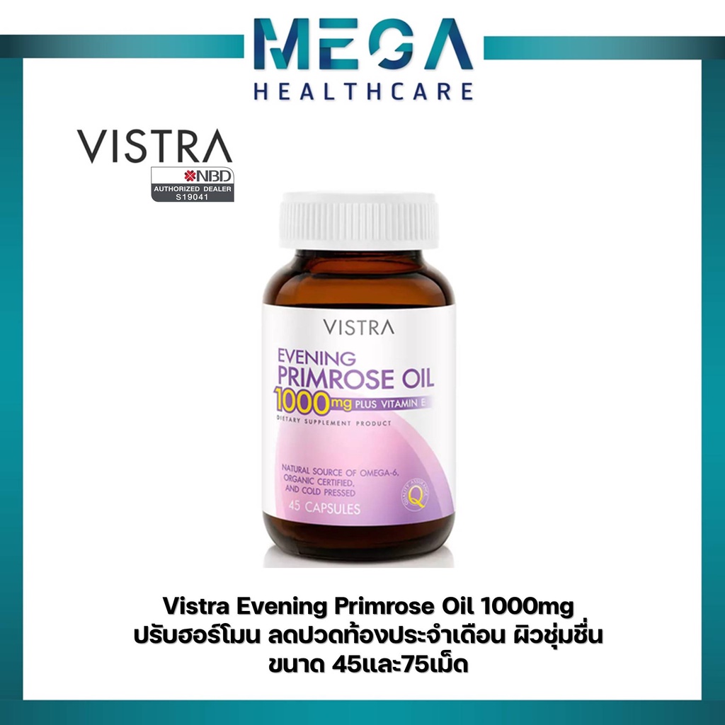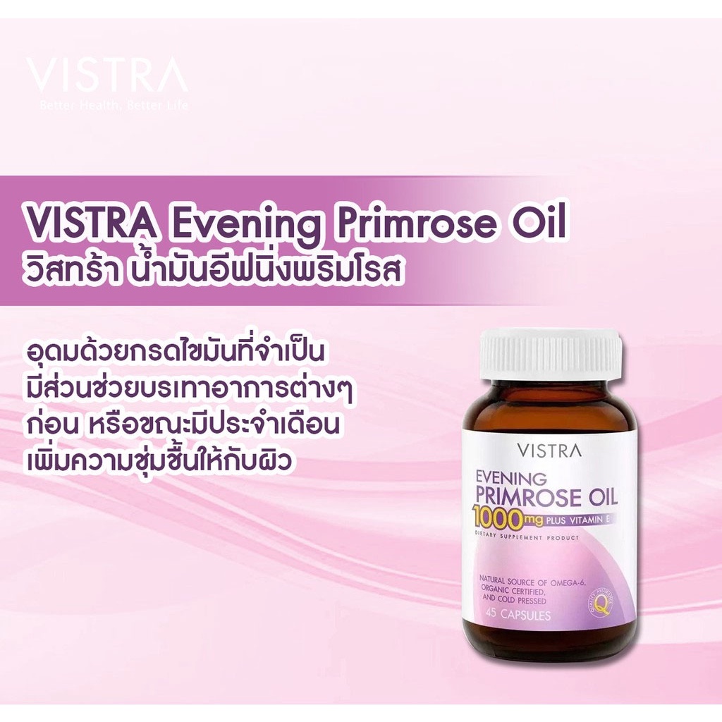 VISTRA Evening Primrose Oil วิสทร้า อีฟนิ่งพริมโรส 1000 มก 1 ขวด ขนาด 45 / 75 เม็ด