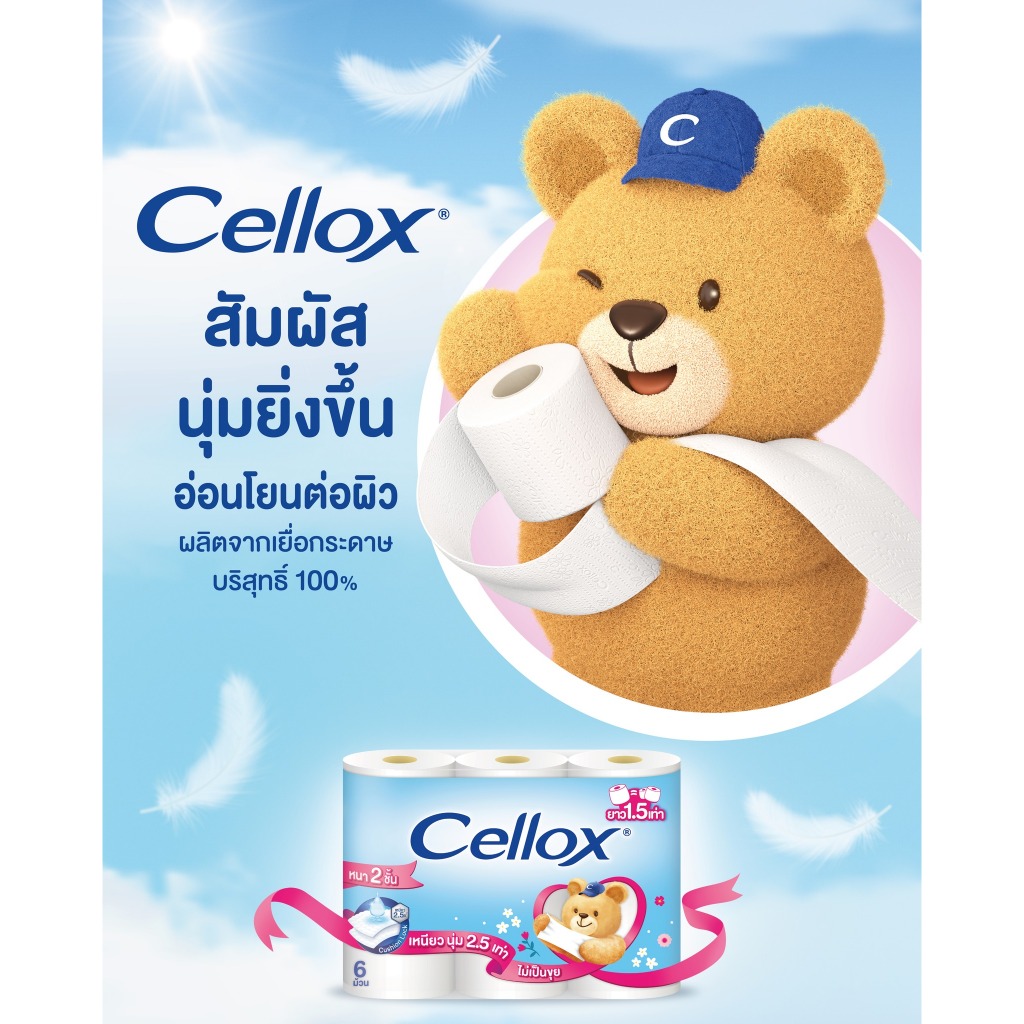 เซลล็อกซ์ 2 ชั้น ยาว 1.5 เท่า 1 ม้วน x 12 ม้วน Cellox 2 ply 1.5X 1'Rx12 ทิชชู๋ม้วน Toilet Tissue
