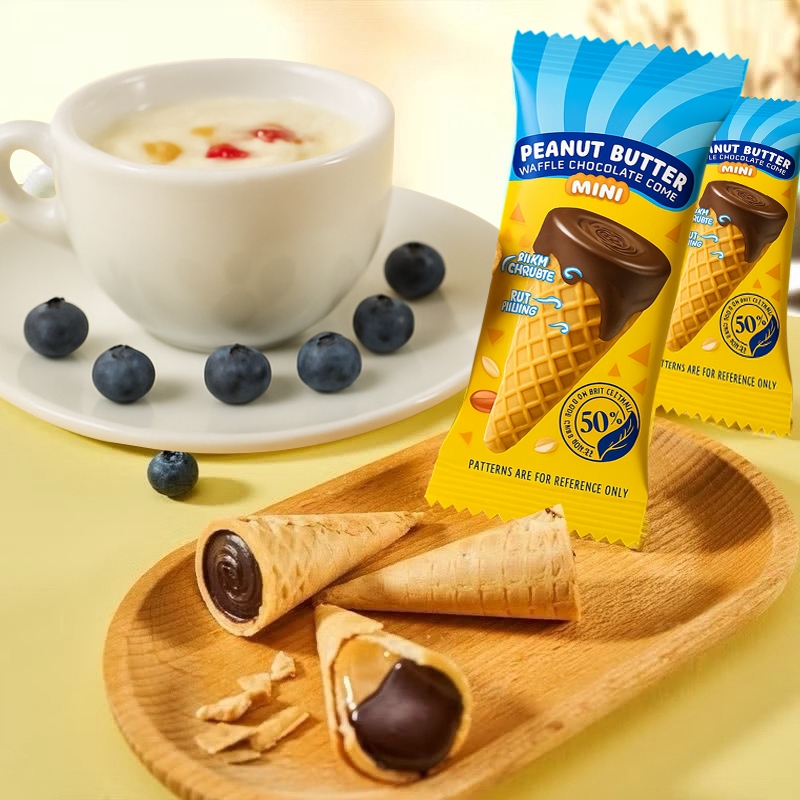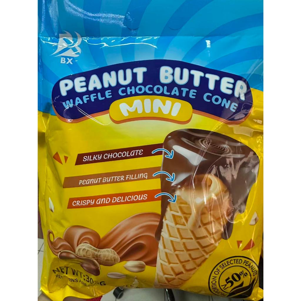 ไอติมเวเฟอร์รสเนยถั่วช็อกโกแลต ขนมอร่อย เวเฟอร์โคนไอติม กรอบ ขนาด 300 กรัม