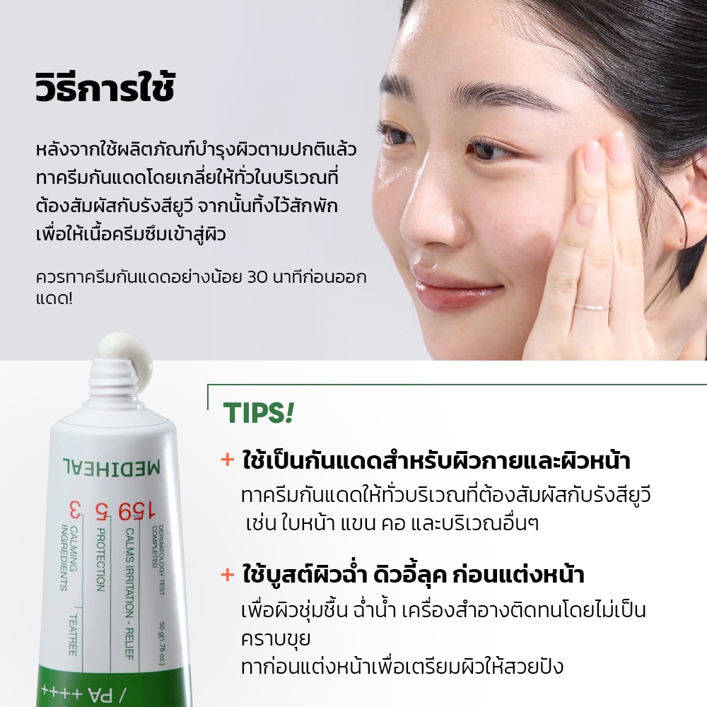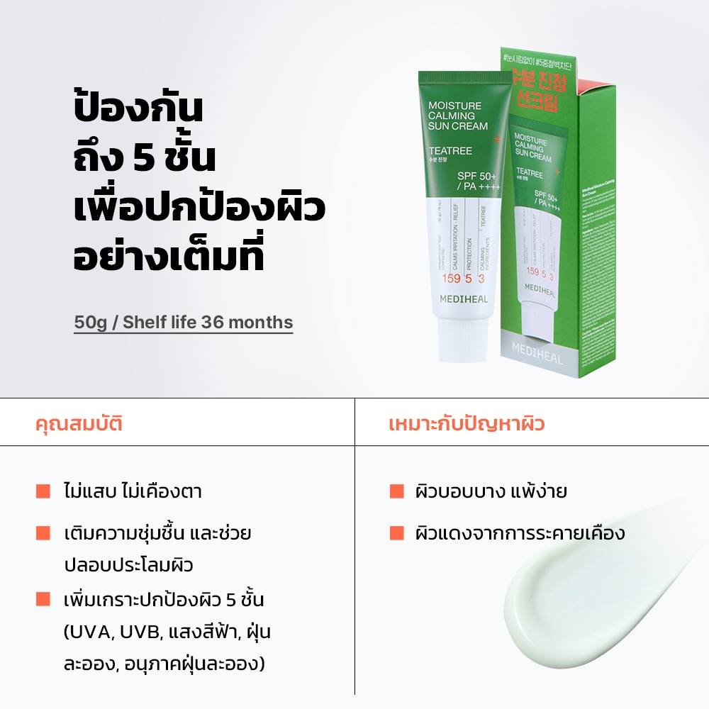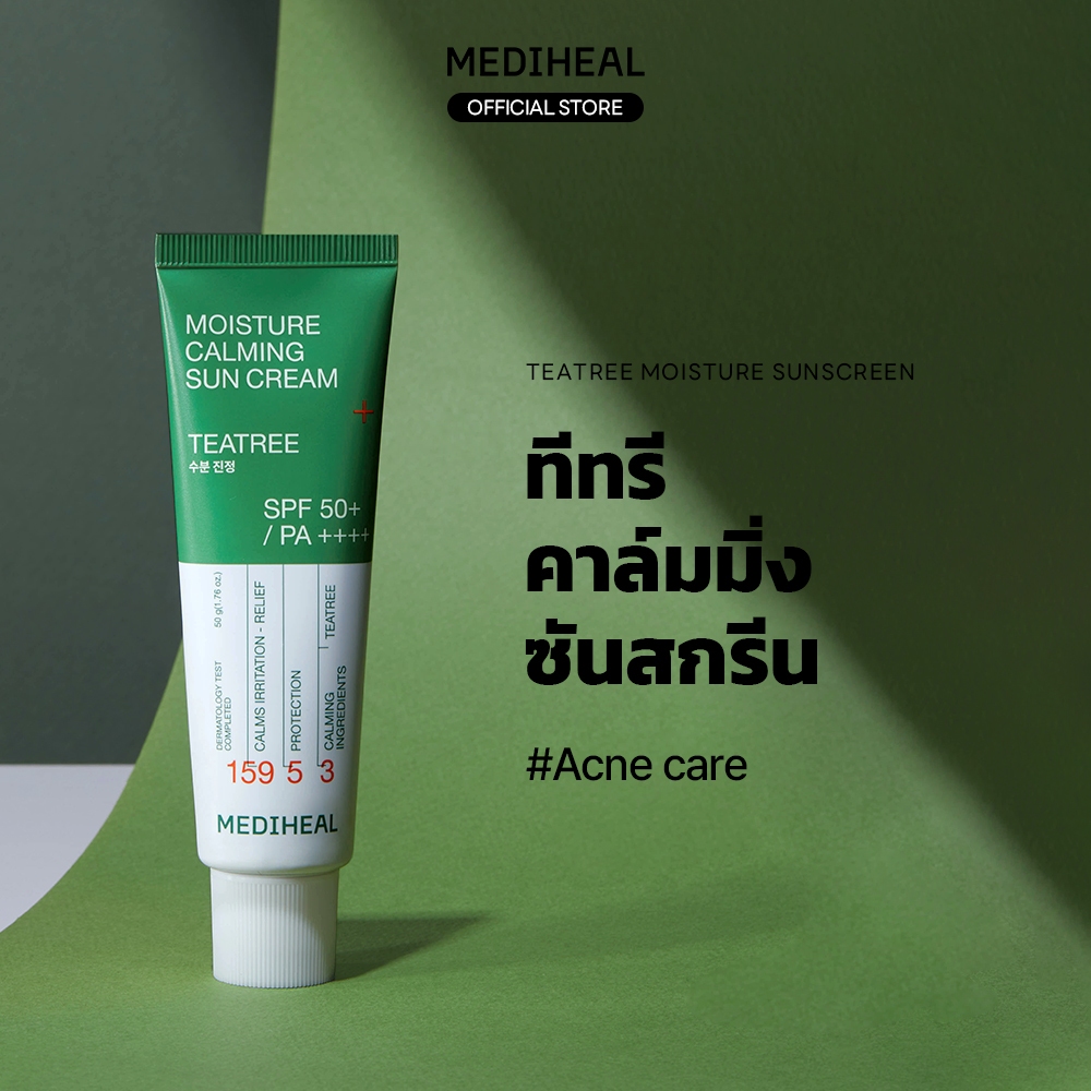 [Official] MEDIHEAL Teatree Calming Sunscreen SPF50+ PA++++ (50g) - กันแดดเพิ่มความขุ่มชื้น ไม่ระคายเคือง เหมาะกับผิวบอบบาง