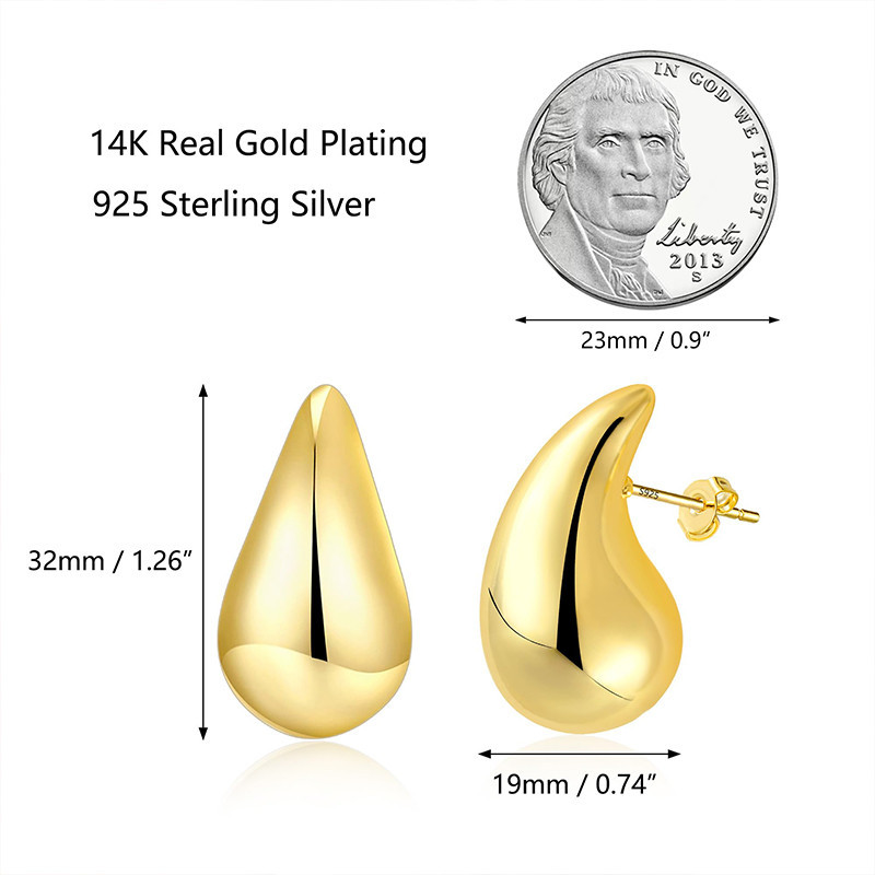 Vintage Gold/Silver สี Chunky Water Drop Dome Stud ต่างหูสําหรับผู้หญิง Punk Glossy Tear ต่างหูเครื่องประดับ 2023 แฟชั่นหญิงของขวัญ