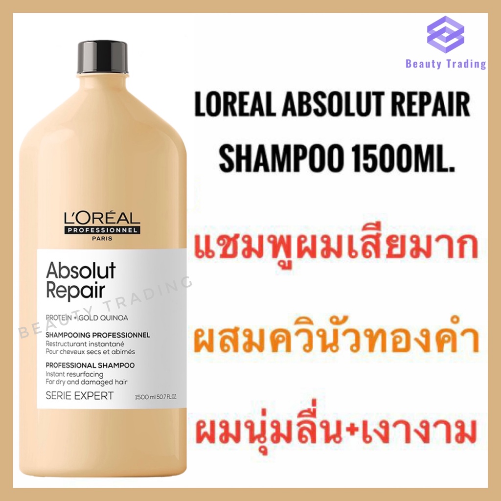 Loreal Absolute แถมหัวปั๊ม Loreal Absolute Repair Shampoo 1500 ml. ลอรีอัล แอ็บโซลูท รีแพร์ แชมพู แชมพู ผมแห้งเสียมาก