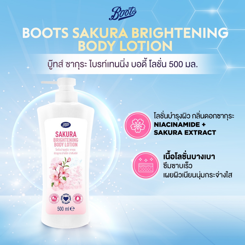 Boots Sakura Brightening Body Lotion 500Ml บู๊ทส์ ซากุระ ไบรท์เทนนิ่ง บอดี้ โลชั่น 500 มล.
