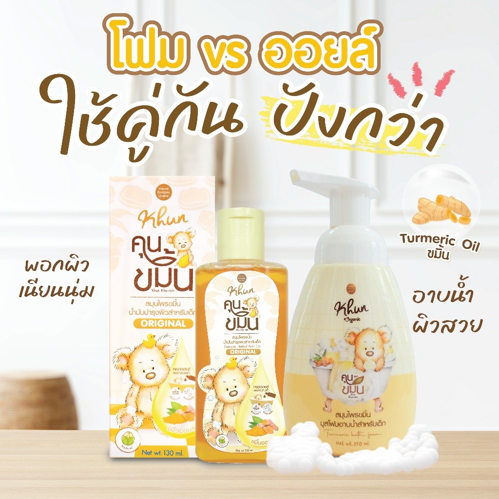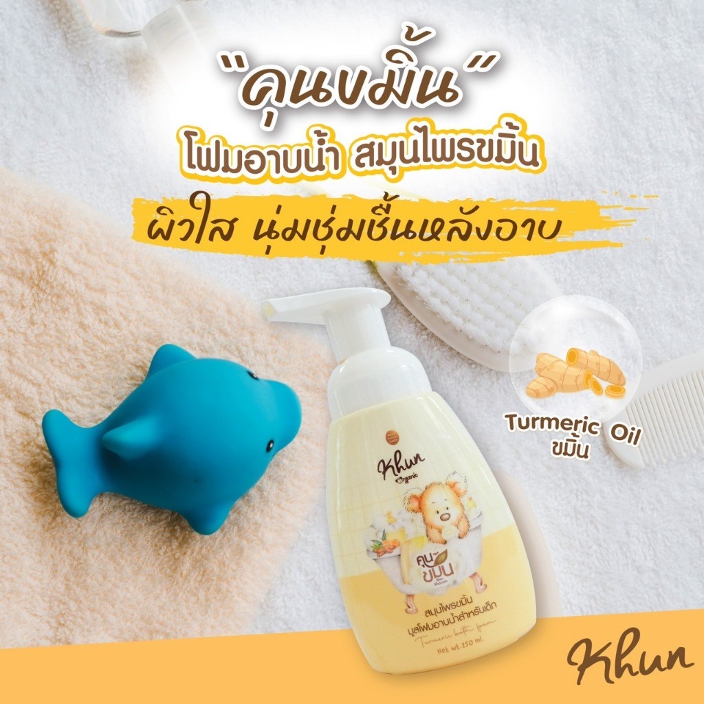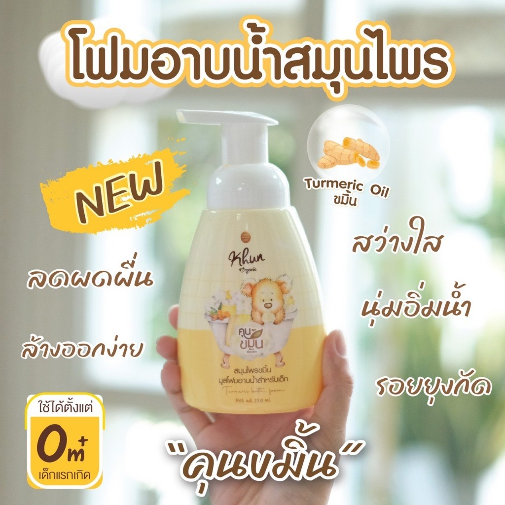 Khun ขมิ้นโฟมอาบน้ำเด็ก สมุนไพรอาบน้ำเด็ก ออร์แกนิค บำรุงผิวชุ่มชื้น ขาวสว่างใส ใช้ได้ตั้งแต่แรกเกิด