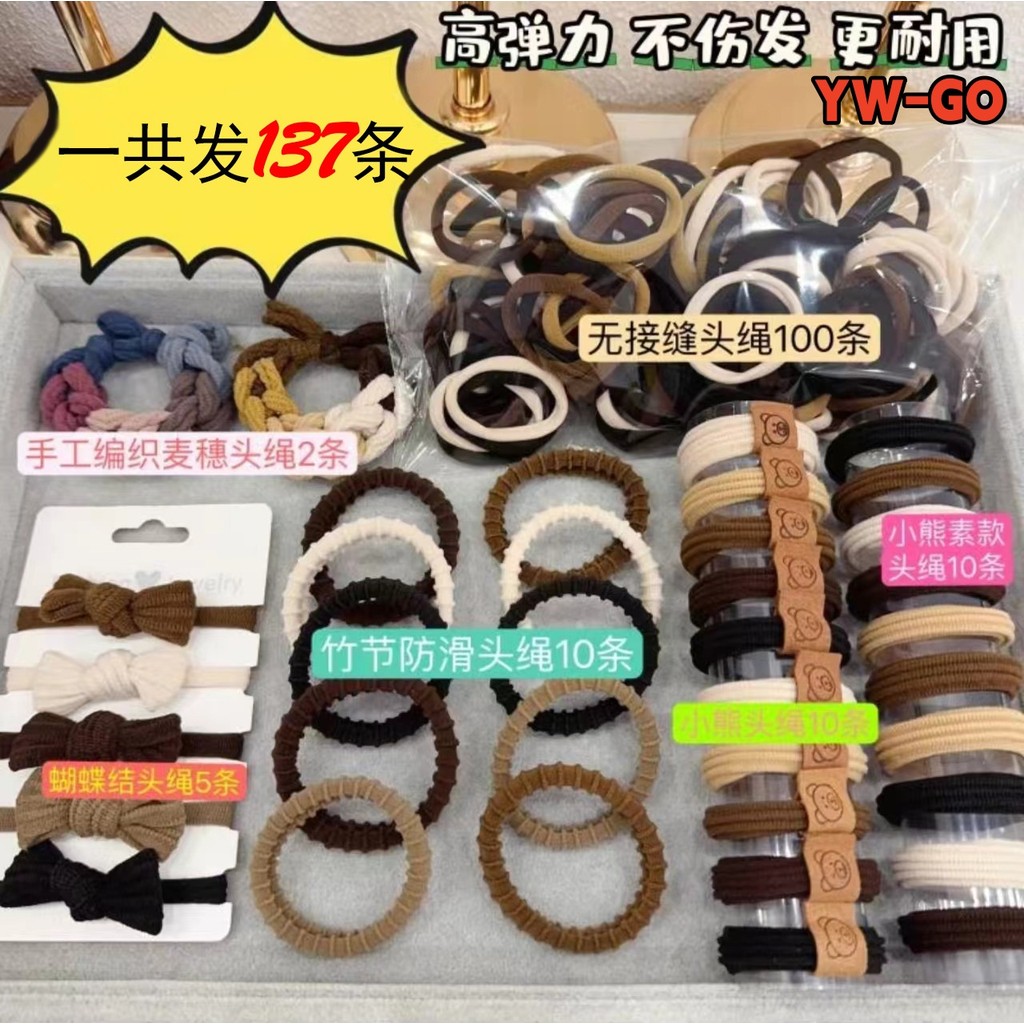 (136/137 ชิ้น 2แบบ) เชือกหัว ไม่มีรอยต่อ แหวนผม ยางรัดผมหางม้าเชือกผม ยางรัด ความยืดหยุ่นสูง ทนทาน น่ารักเชือกหัว