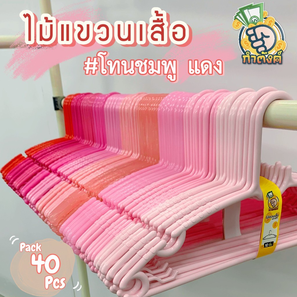 H40✨ ไม้แขวนเสื้อชมพู-แดง หวานหวาน คุมโทนชมพู เลือกเฉดสีได้ ส่ง 40 ชิ้น (กล่อง M) ✨ by กำตังค์