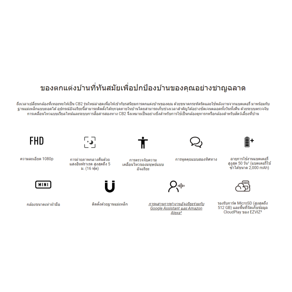 Ezviz รุ่น CB2 2MP Wifi Battery Camera (BLACK/WHITE) : กล้องวงจรปิดภายนอก ( EZV-CS-CB2-1080P ) ประกันศูนย์ EZVIZ 2 ปี