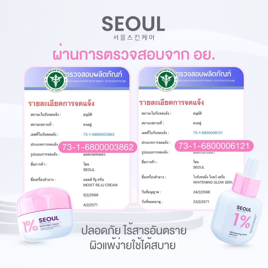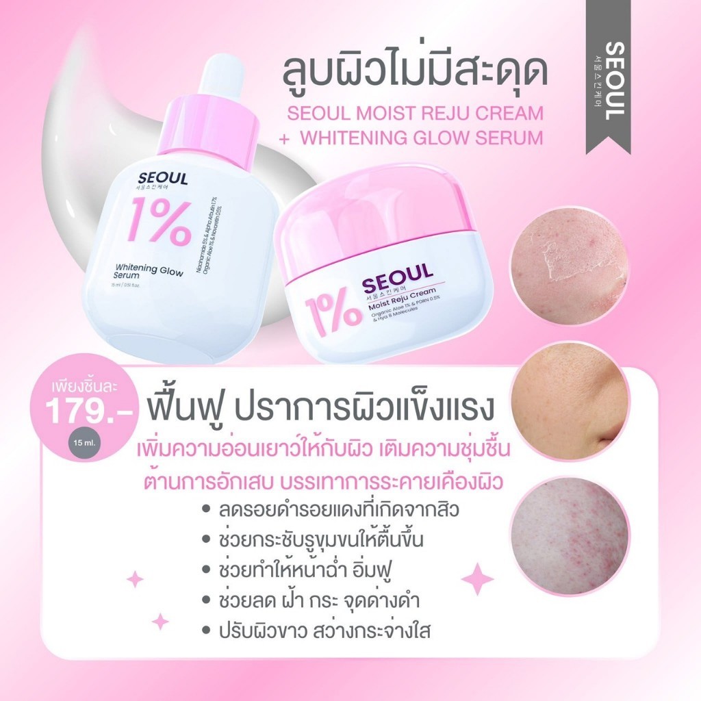 **แพคเกจใหม่** Seoul Moist Reju Cream & Seoul Serum white เซรั่มไวท์โกลด์โซล ครีมมอยซ์รีจู โซล ลดจุดด่างดำ ลดสิว ♥️♥️