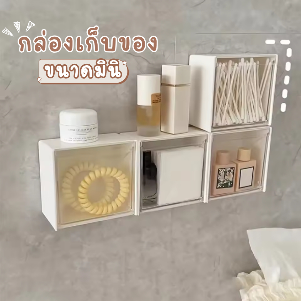 กล่องเก็บของมินิ เก็บเครื่องสําอาง เครื่องเขียน แบบติดผนัง กันน้ำ ไม่ต้องเจาะผนัง