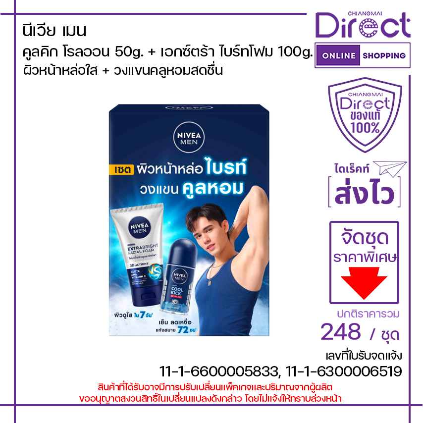 นีเวีย เมน คูล คิก โรลออน 50ml.+ นีเวีย เอกซ์ตร้า ไบร์ทโฟม 100g. | 44552