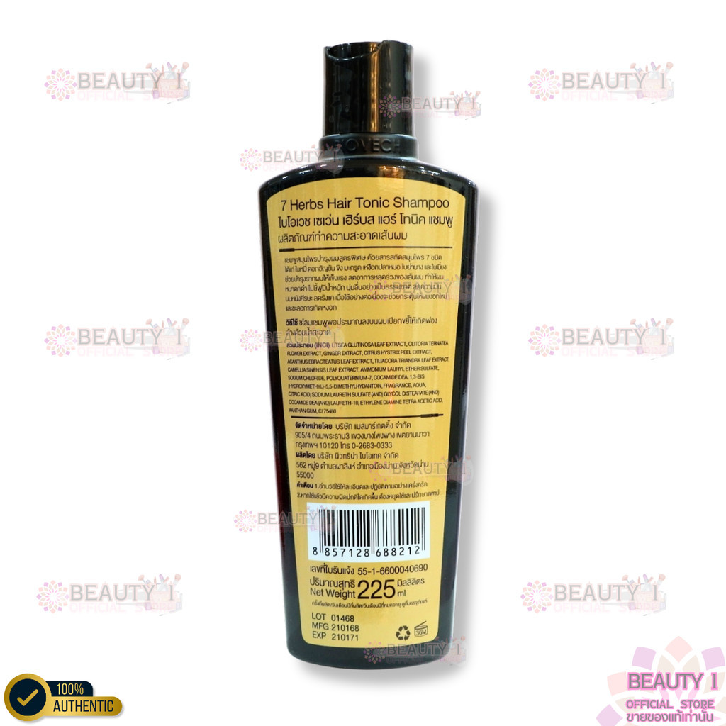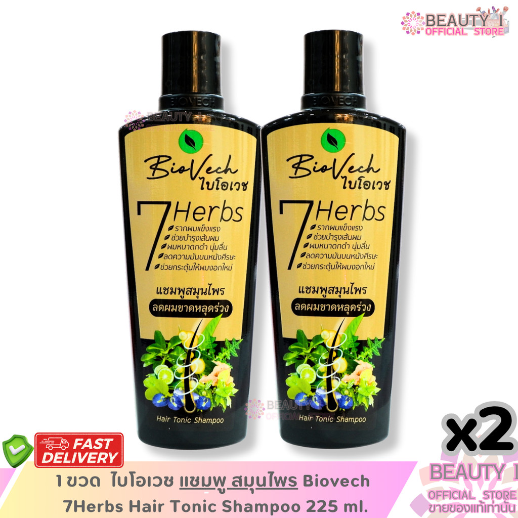 ของแท้ โปร 2 ขวด แชมพูสระผม สมุนไพร ไบโอเวช Biovech 7Herbs Hair Tonic Shampoo 225 ml.