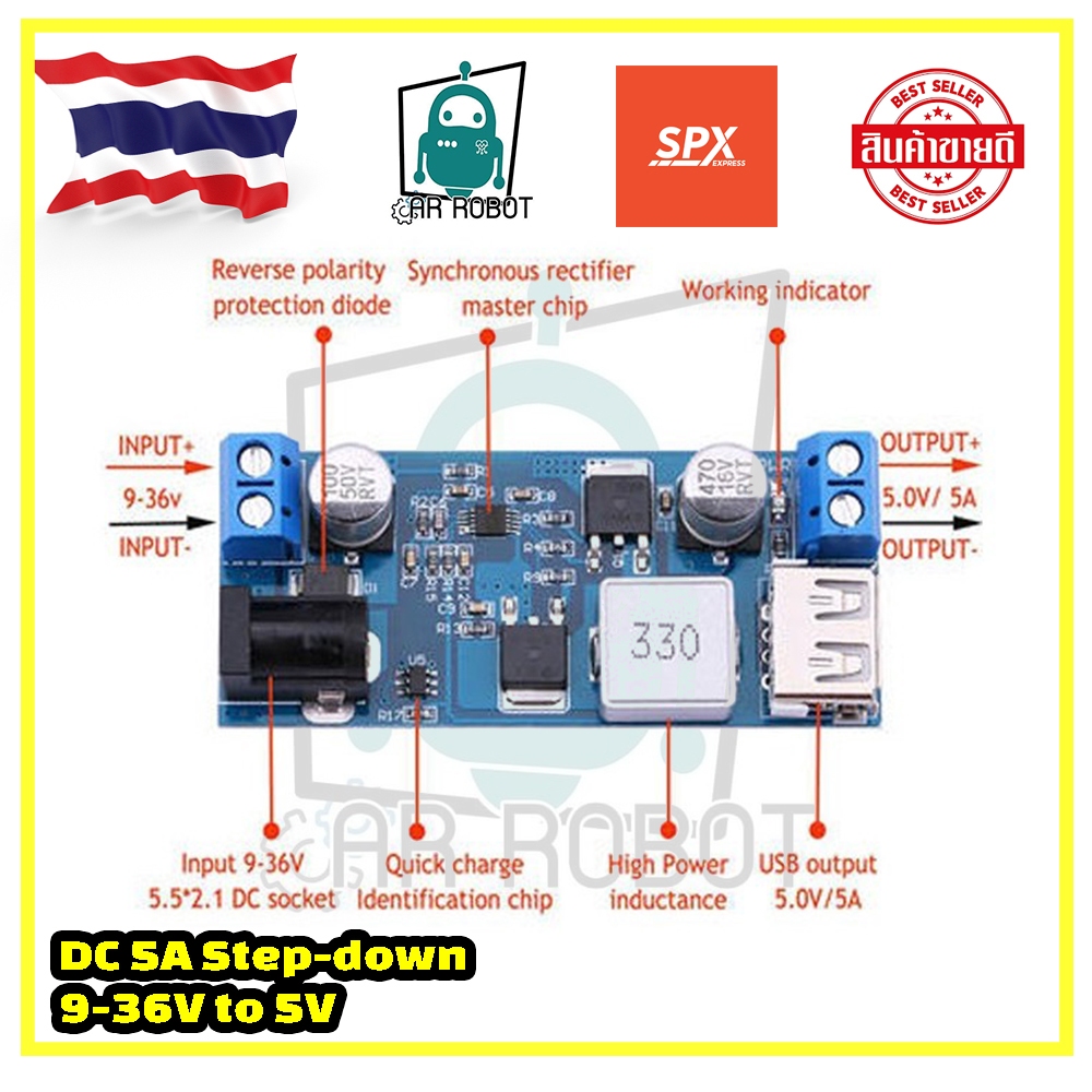 Step-down DC 5A Power Supply Module 9-36V to 5V Power Converter