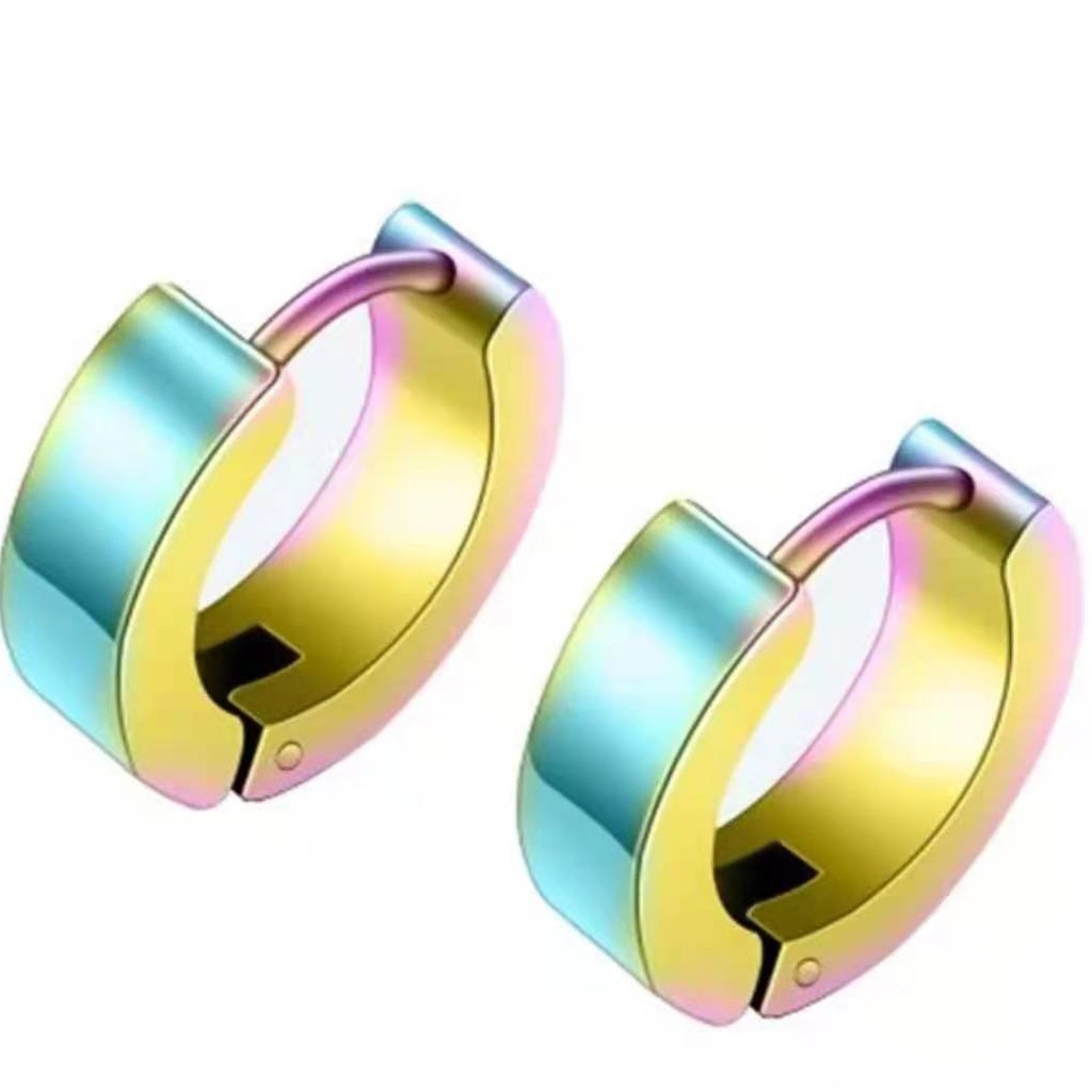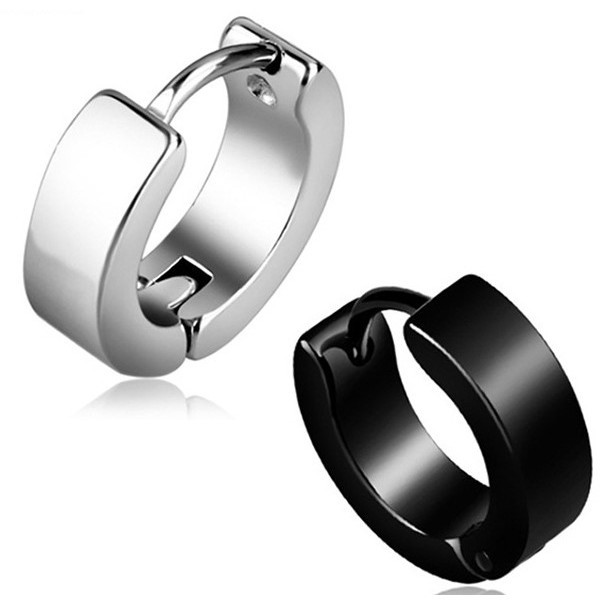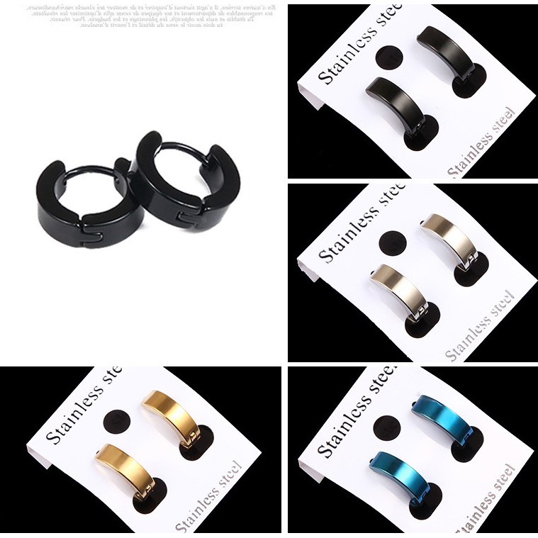 ต่างหู ตุ้มหู จิว ต่างหูผู้ชาย Punk Men Stainless Steel Hoop Piercing Round Earrings for Women Men 1 คู่