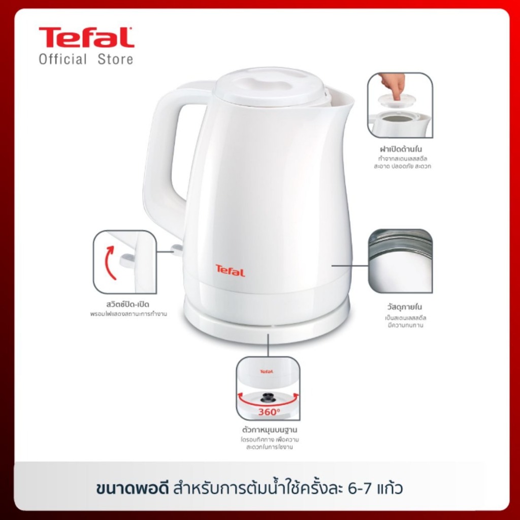 TEFAL กาต้มน้ำไฟฟ้า ความจุ1.5 ลิตร กำลังไฟ 2,400 วัตต์ รุ่น KO150166 รับประกันสินค้า 2 ปี