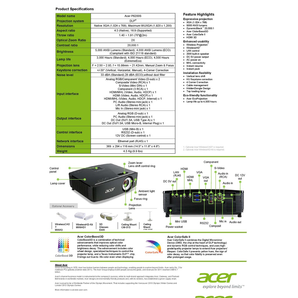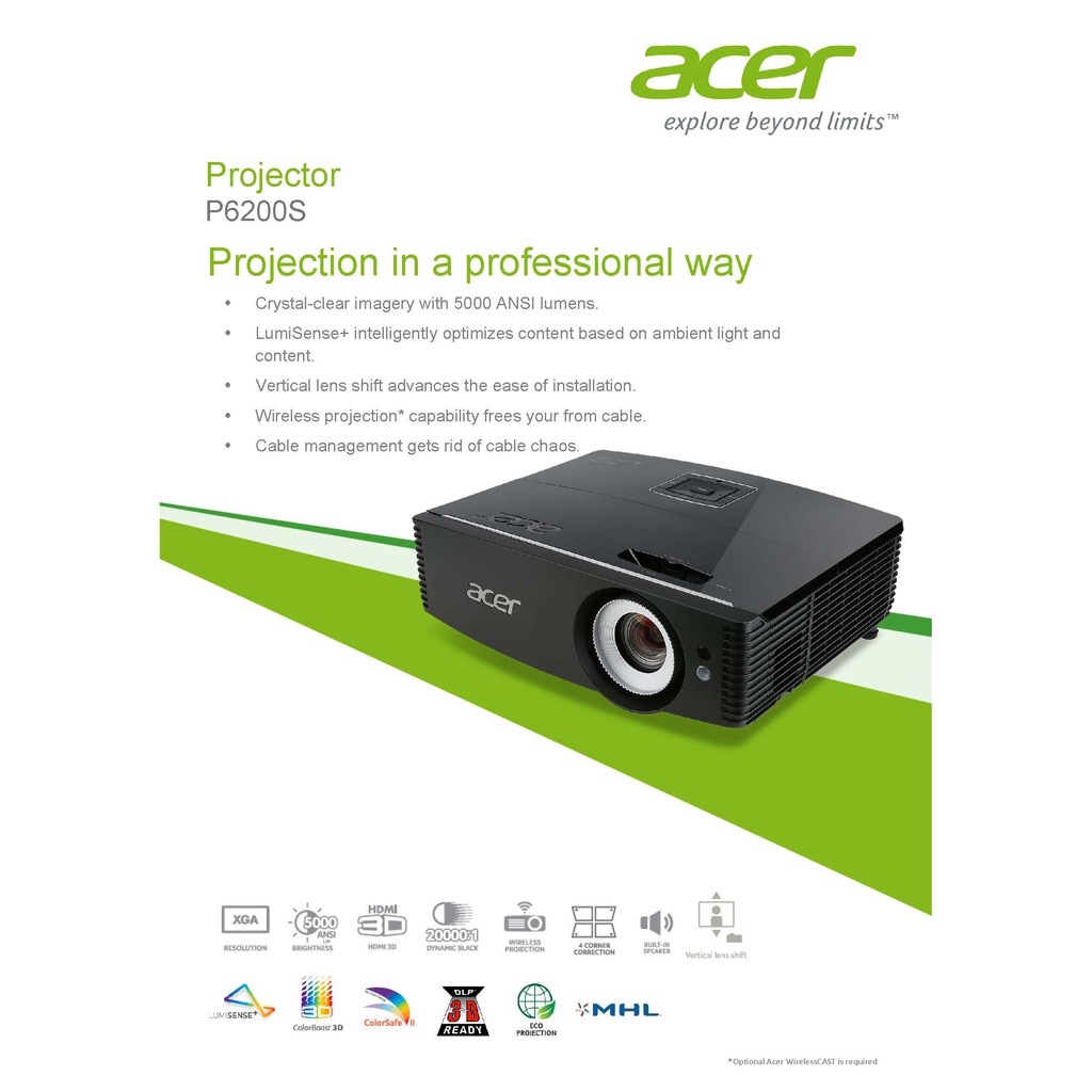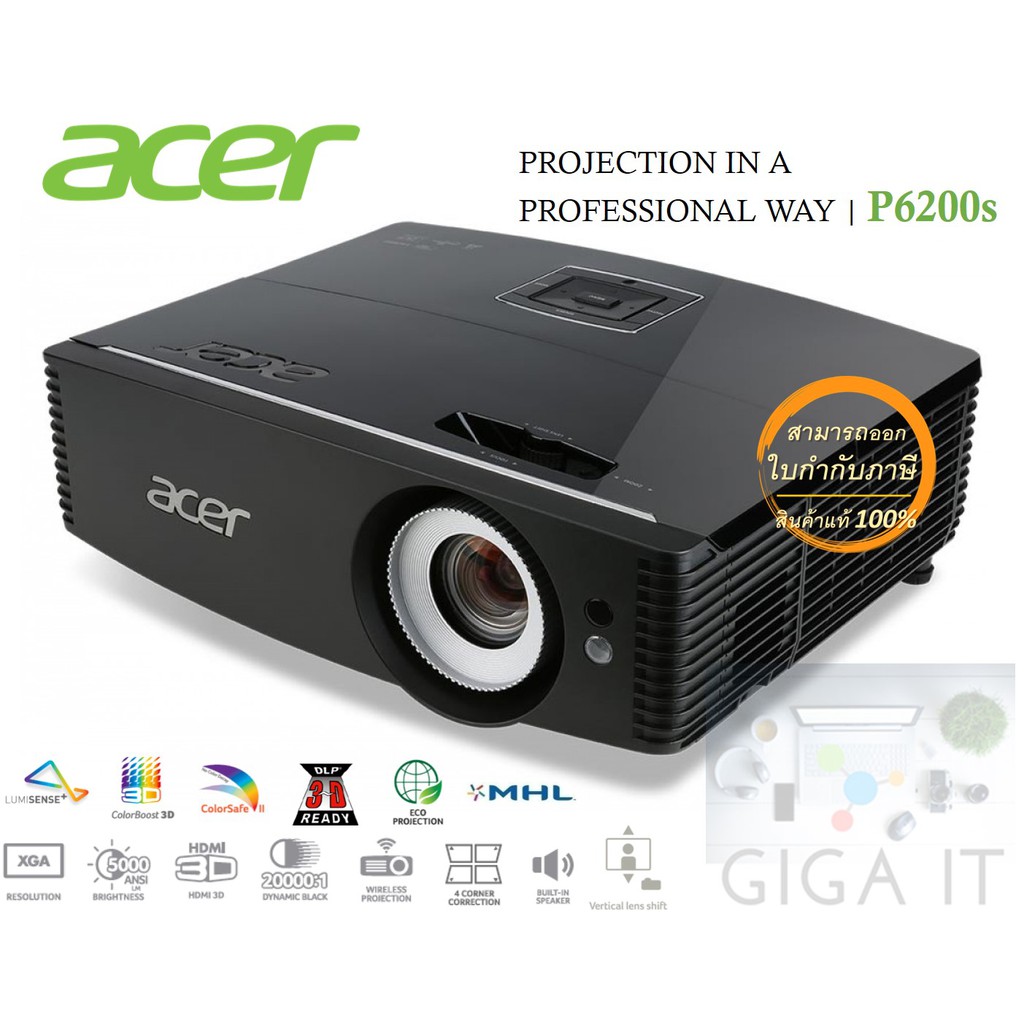 ACER Projector รุ่น P6200s (DLP / 5000 LM / XGA) ประกันศูนย์ Acer Thailand 3 ปี