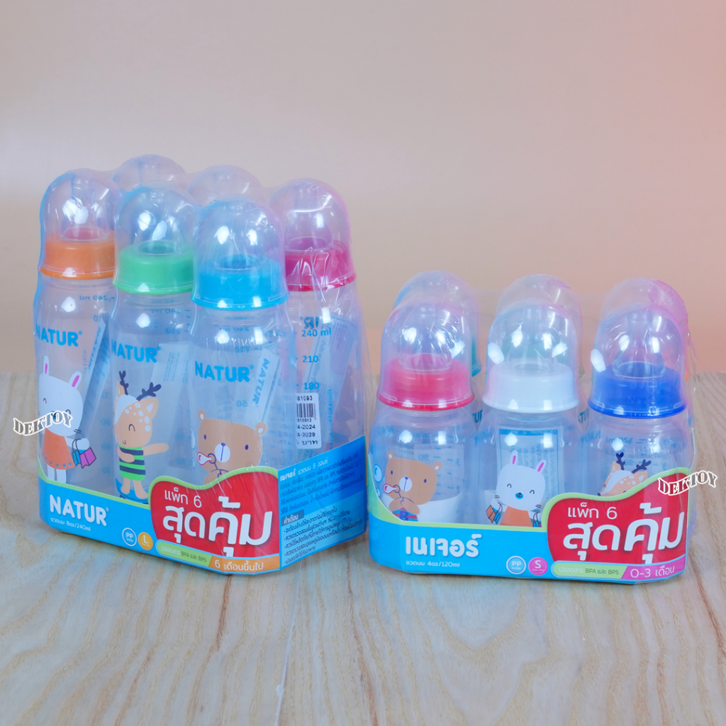 NATUR เนเจอร์ ขวดนมเนเจอร์ ทรงกลม 4และ 8 ออนซ์ แพ็ค3และ6ขวด
