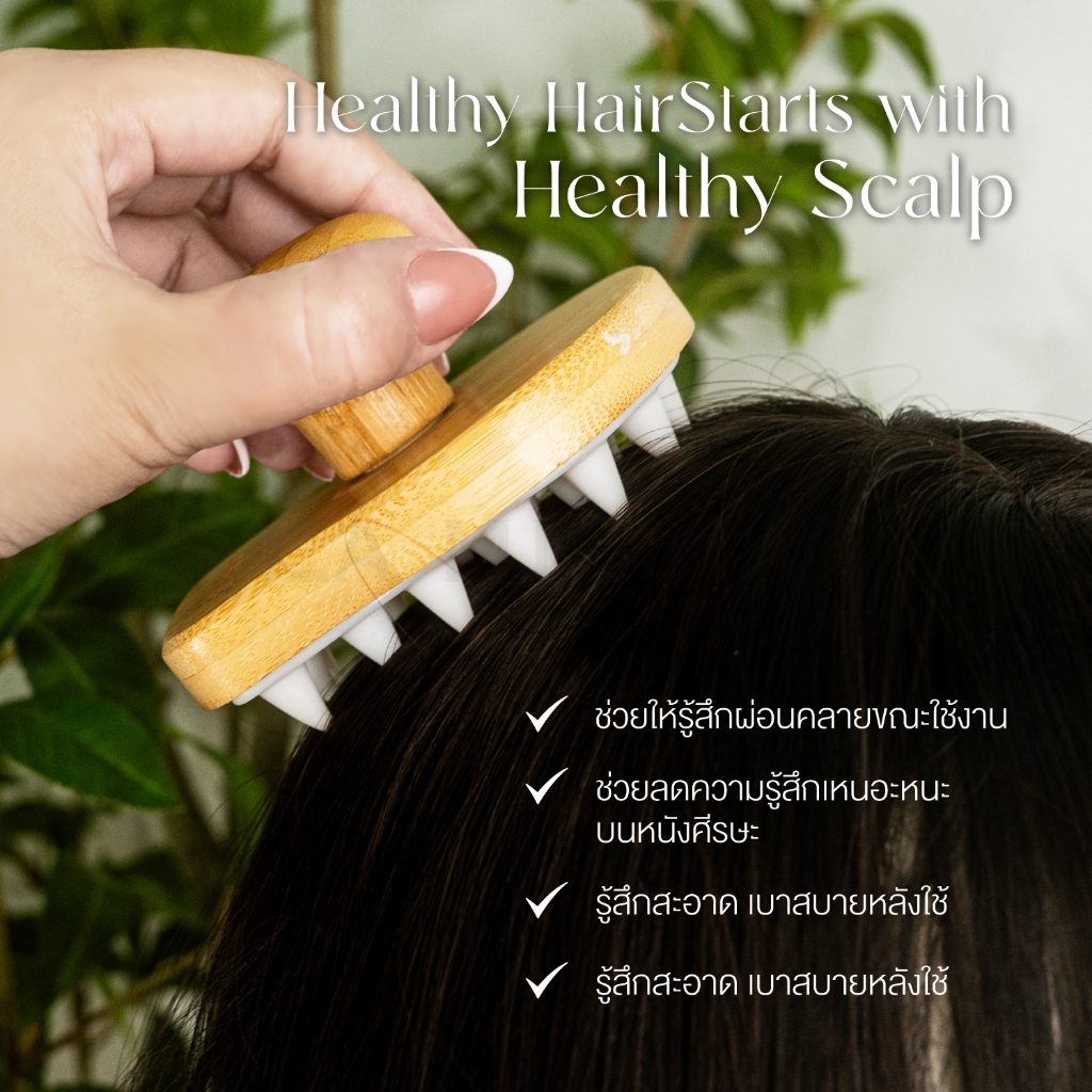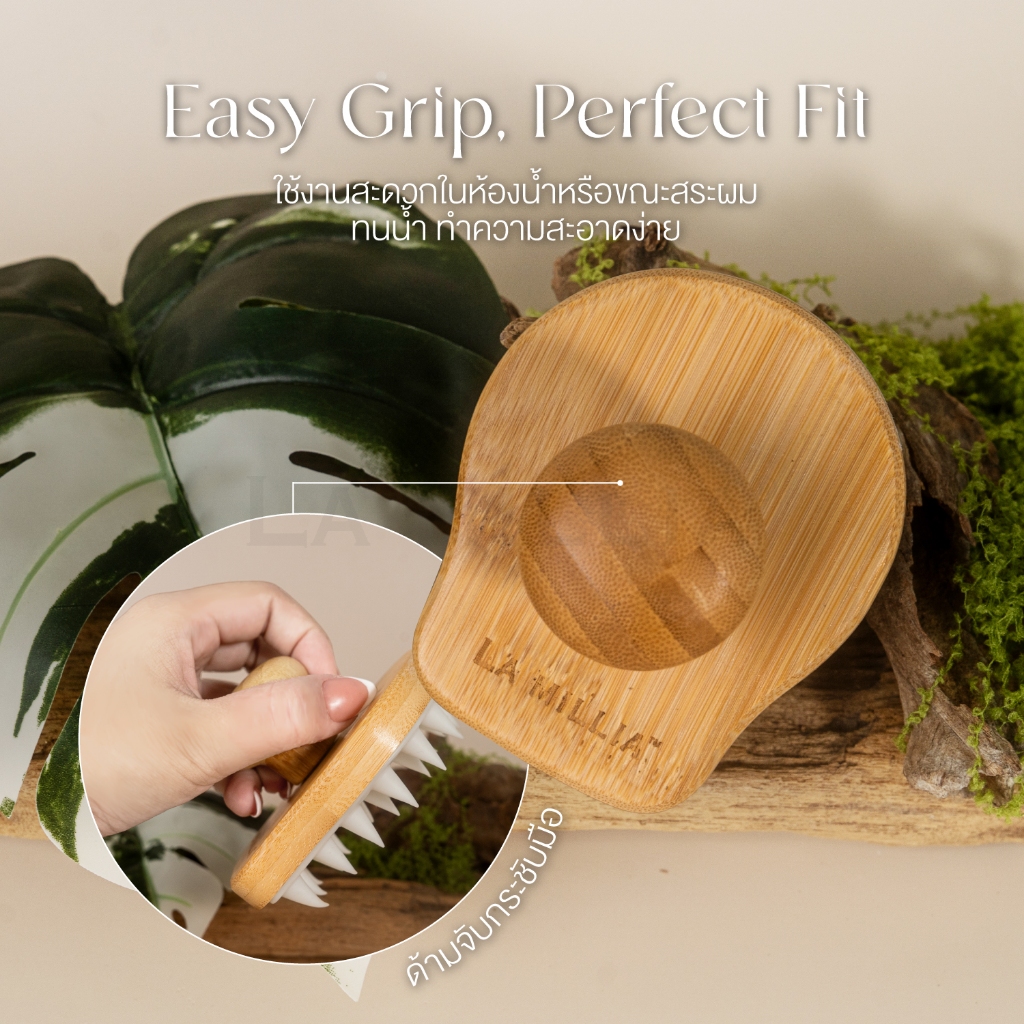 LA MILLIA Bamboo Massage Brush ลา มิลเลีย แปรงนวดไม้ไผ่ แปรงสระผม แปรงนวดหนังศีรษะ นวด บำรุง ผมทำความสะอาด