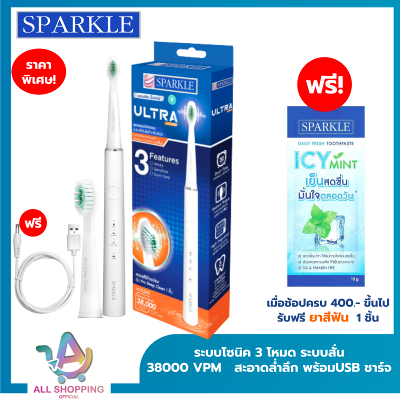 (โค้ดลด40% พิเศษLive!!) SPARKLE แปรงสีฟันไฟฟ้า โซนิค SONIC TOOTHBRUSH ULTRA ACTIVE รุ่น SK0540 3 โหมด