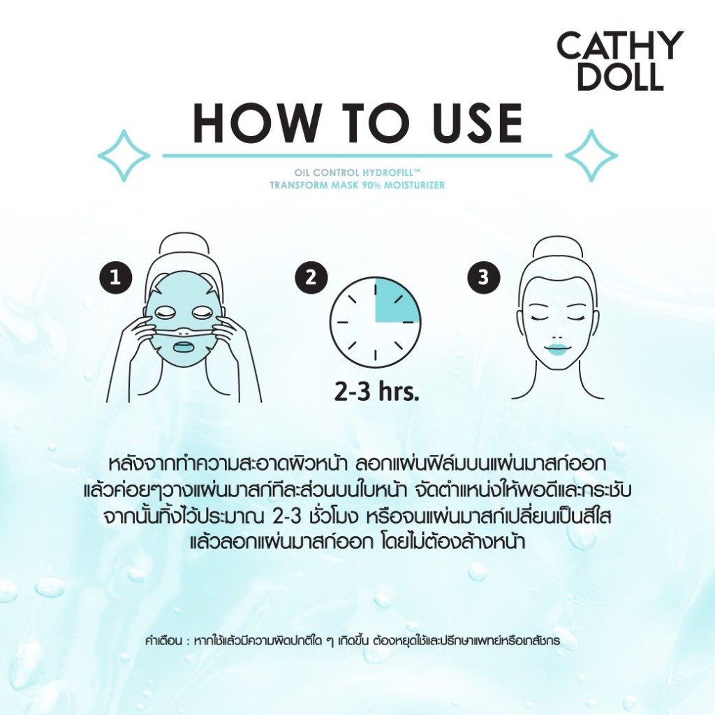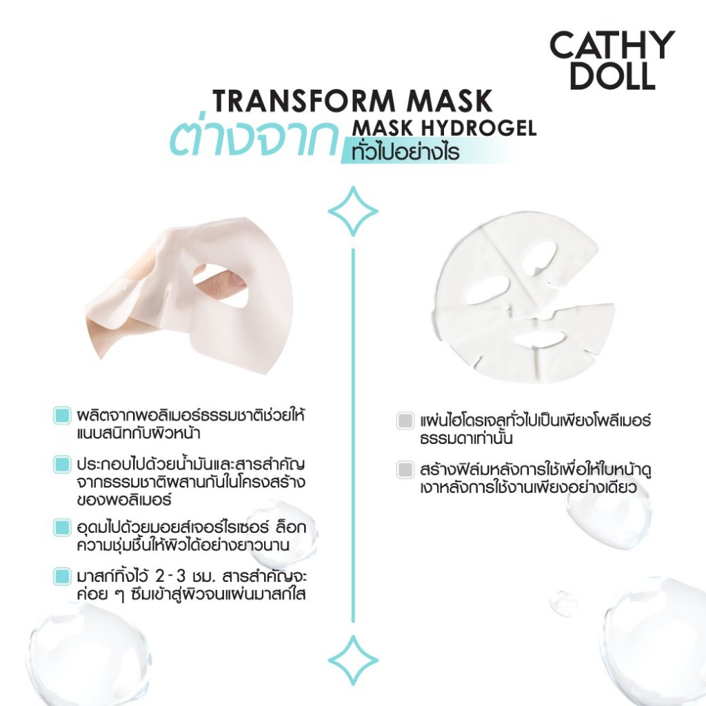 ถูก/แท้/มีไลฟ์ มาสก์ Cathy Doll Hydrofill Transform Mask มาสก์ไฮโดรเจล มาสก์หน้า เนียนนุ่ม ลดความมัน ผิวใส ชุ่มชื้น