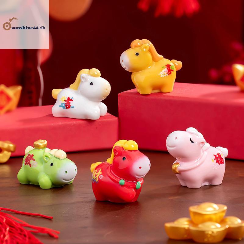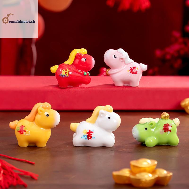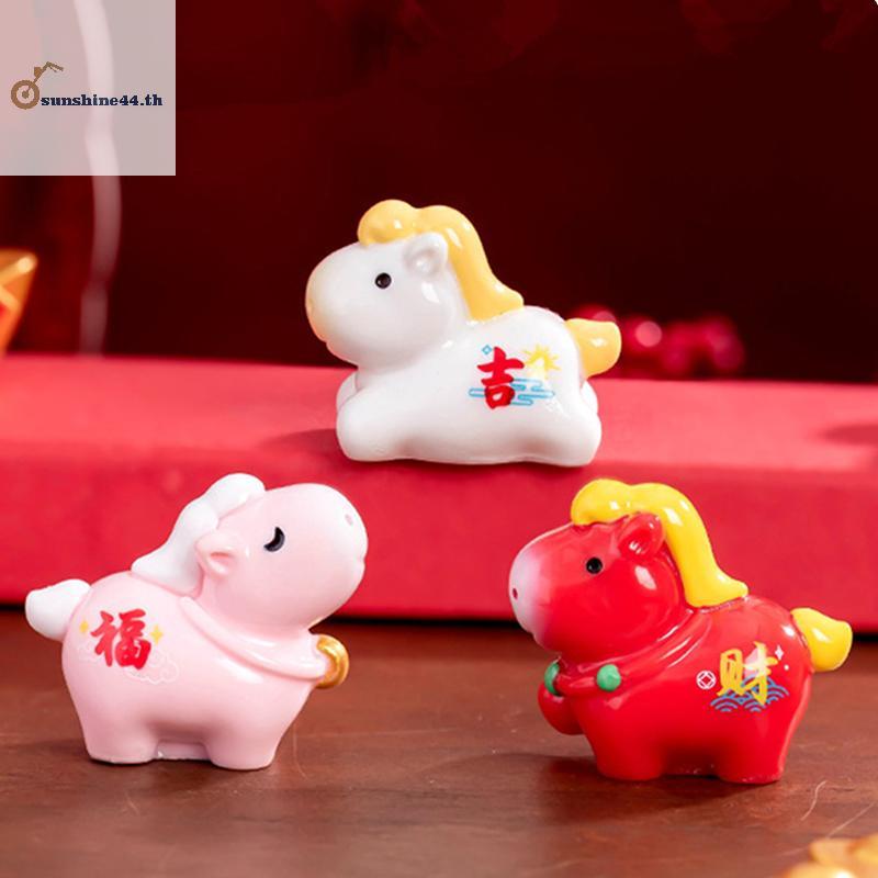 FOURSUN 2026 ม้าปีเครื่องประดับขนาดเล็ก Zodiac การ์ตูน Lucky Pony DIY ตกแต่งรถเทศกาลฤดูใบไม้ผลิ Office Desktop Decor เครื่องประดับ TH