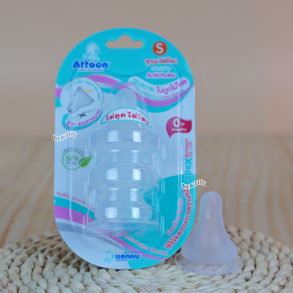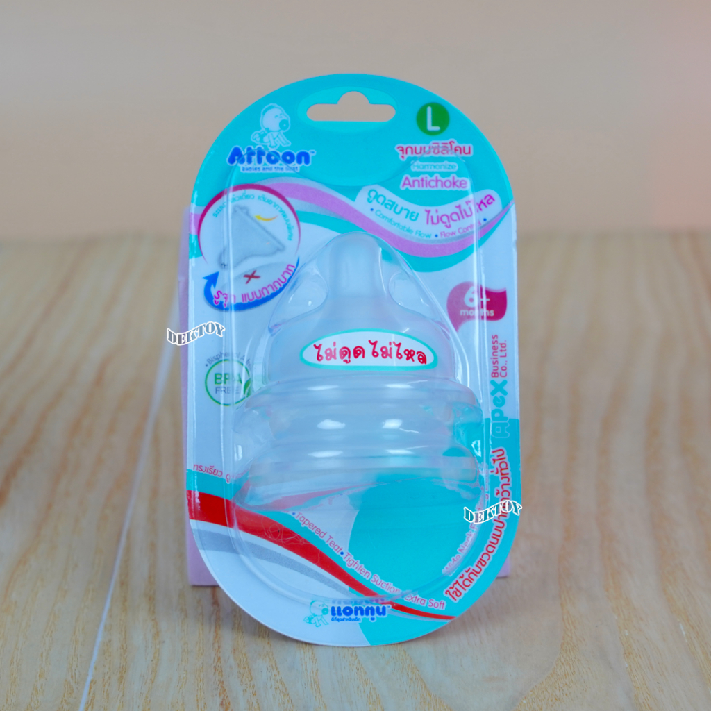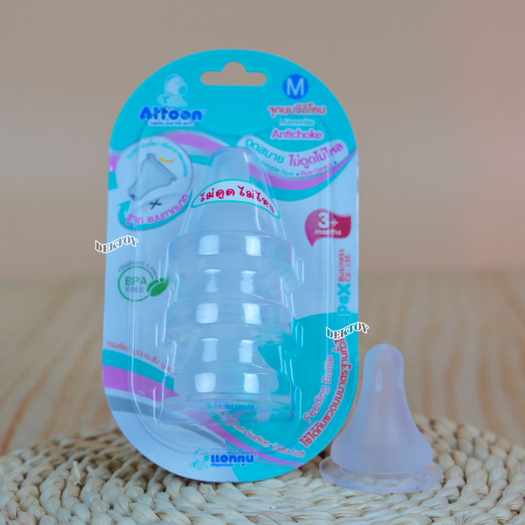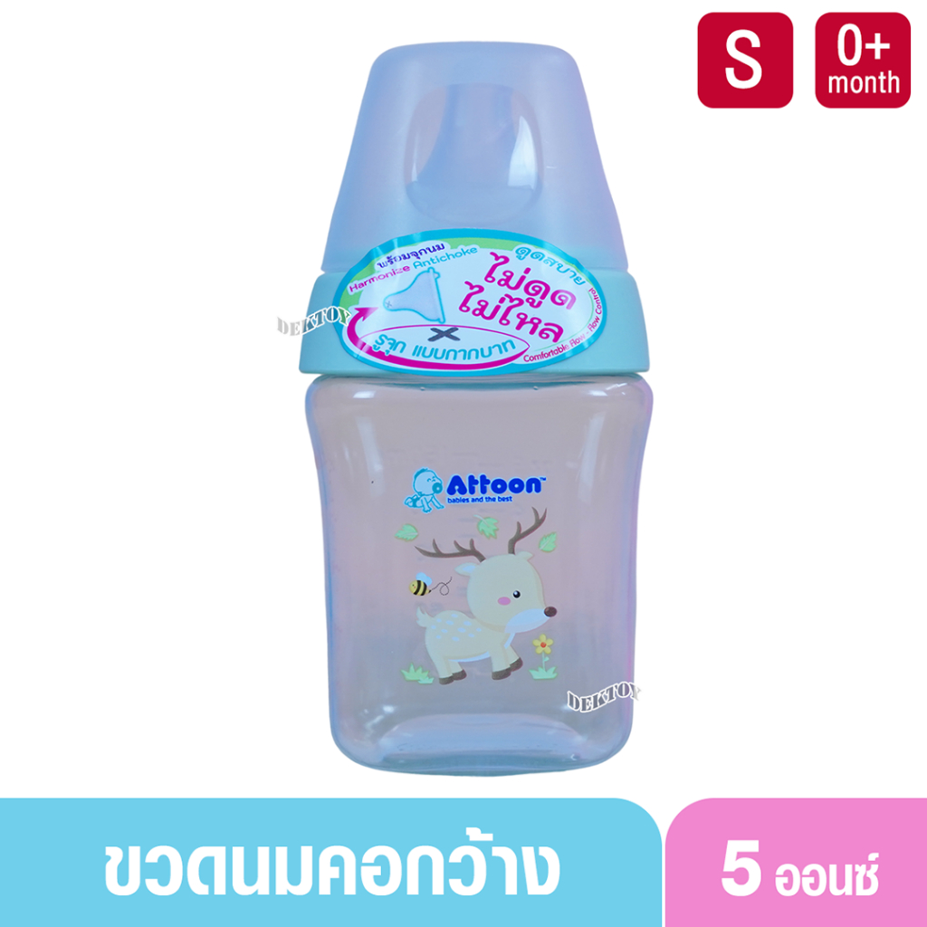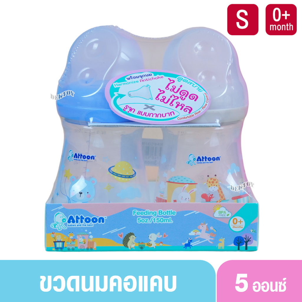 ขวดนมแอทตูน PP ทรงสแควร์ คอแคบ และ คอกว้าง ขนาด 5 และ 9 ออนซ์ มาพร้อมกับจุก หนา นุ่ม ไม่ดูดไม่ไหล