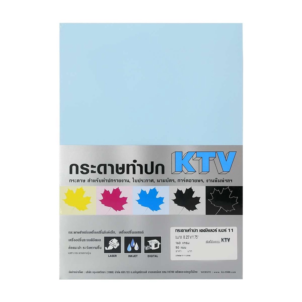 KTV กระดาษทำปก A4 160 แกรม 50 แผ่น เบอร์ 11 สีฟ้าอ่อน |ZWG|