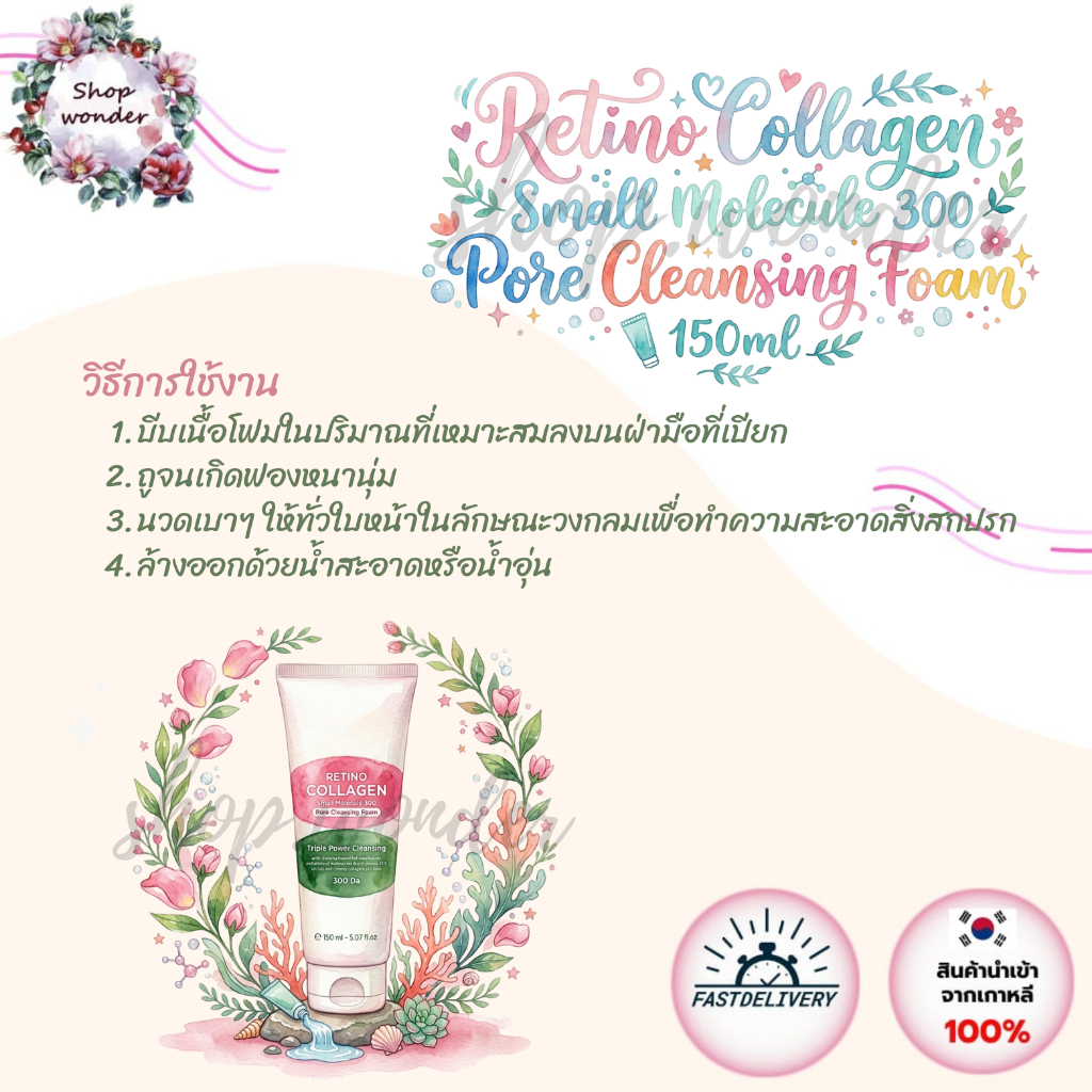 Retino Collagen Small Molecule 300 Pore Cleansing Foam 150ml (ของแท้ / พร้อมส่ง)